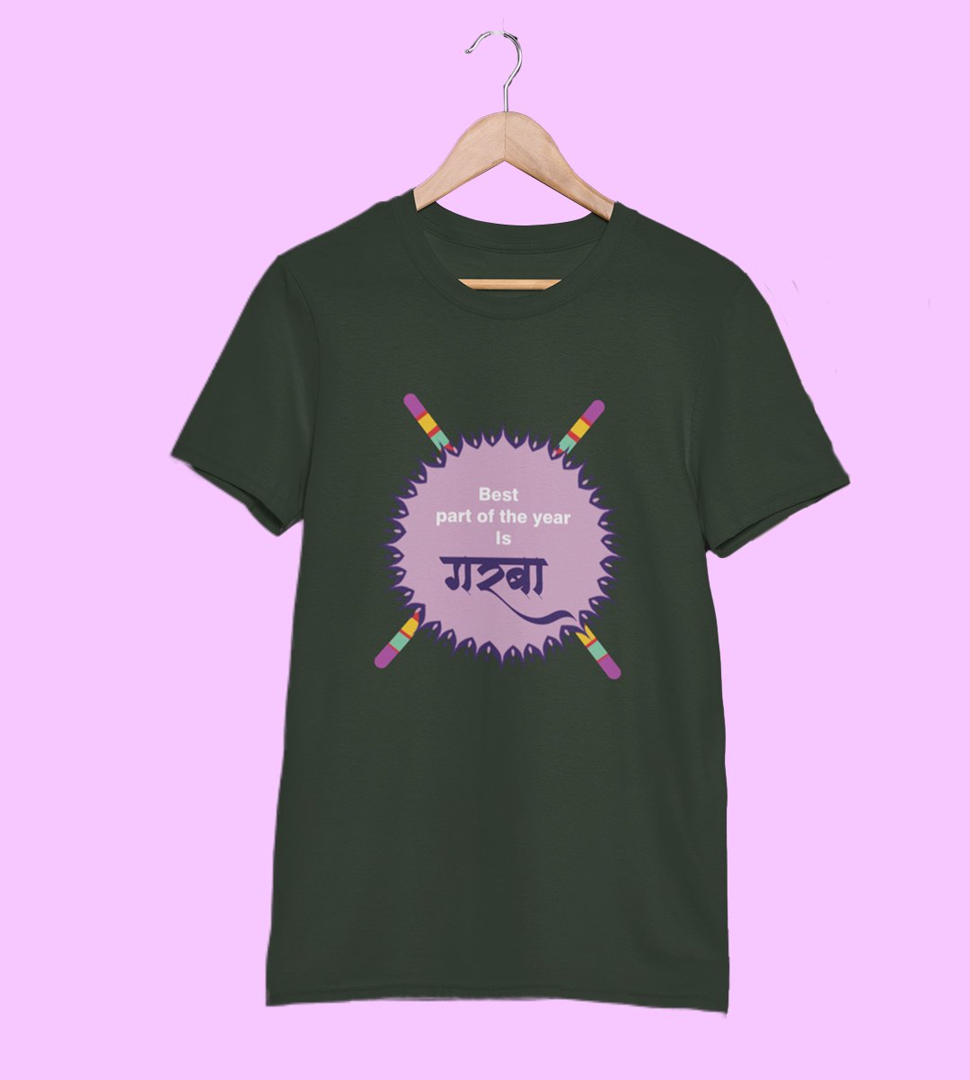 Garba (Violet blast) printed unisex adults round neck cotton half-sleeve green tshirt specially for Navratri festival/ Durga puja