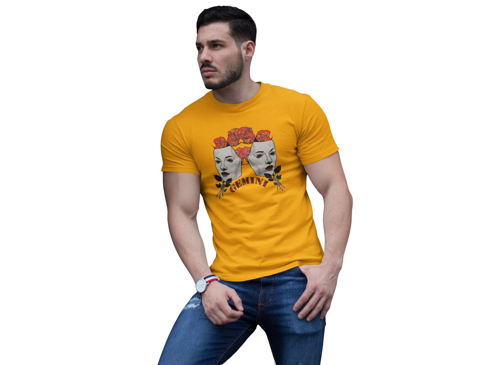 Gemini, Roses on head (Yellow T) - Printed Zodiac Sign Tshirts - Made especially for astrology lovers people