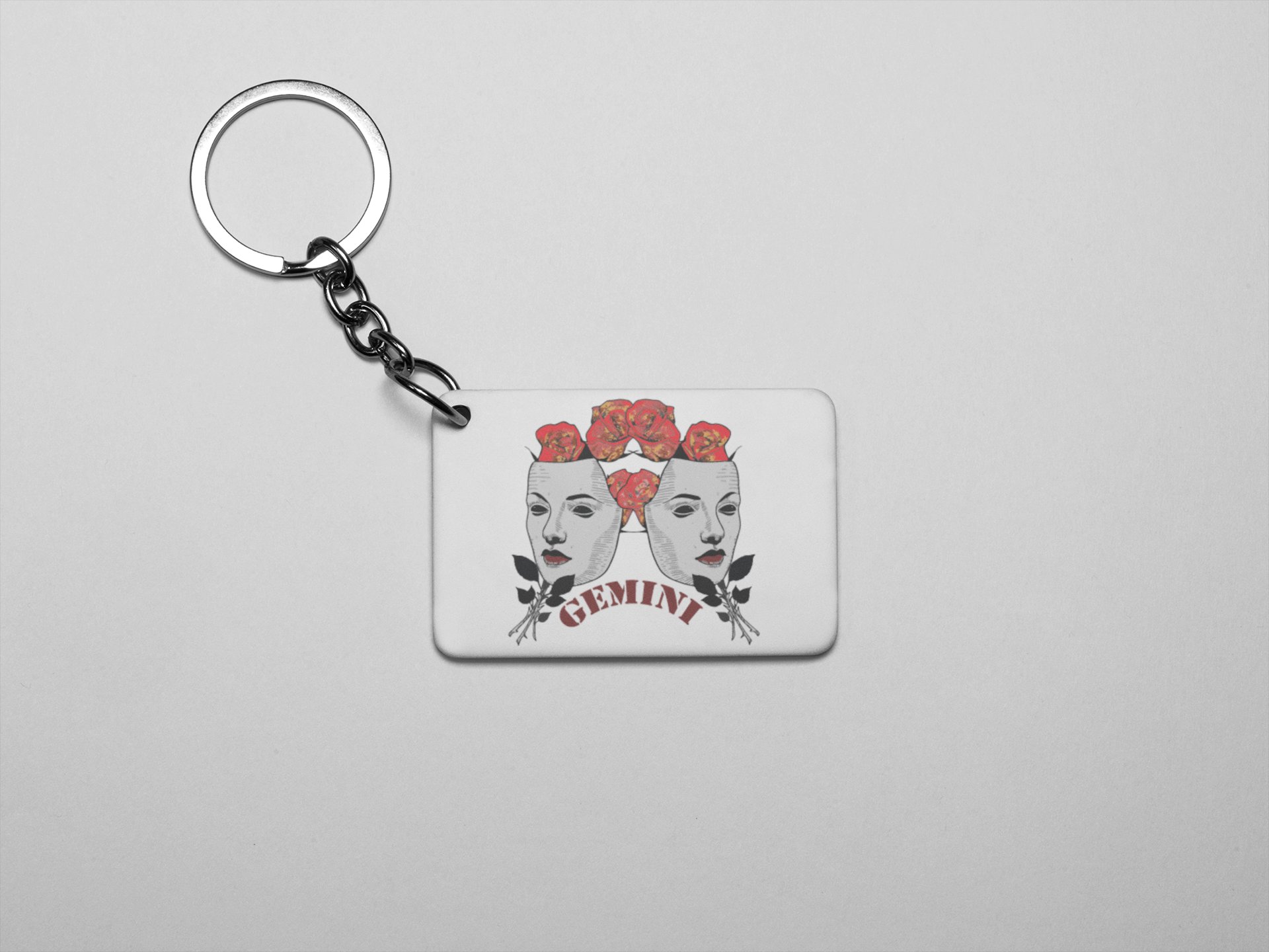 Gemini, roses on heads - Zodiac Sign Printed Keychains For Astrology Lovers(Pack of 2)