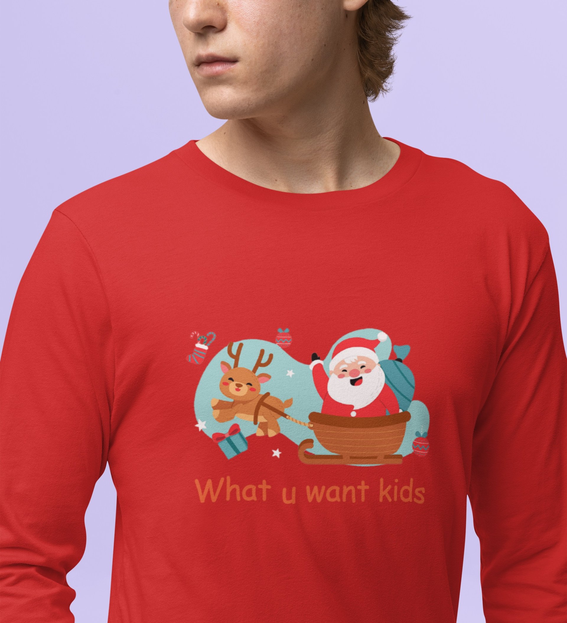 Gen-Z Santa At Service: Best DesignedFull Sleeve T-shirt Red Most Liked Gift For Boys Girls