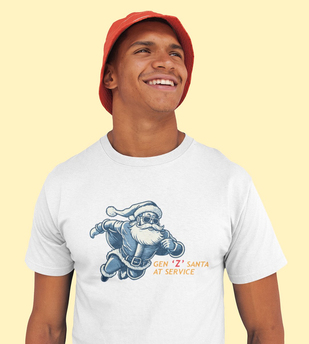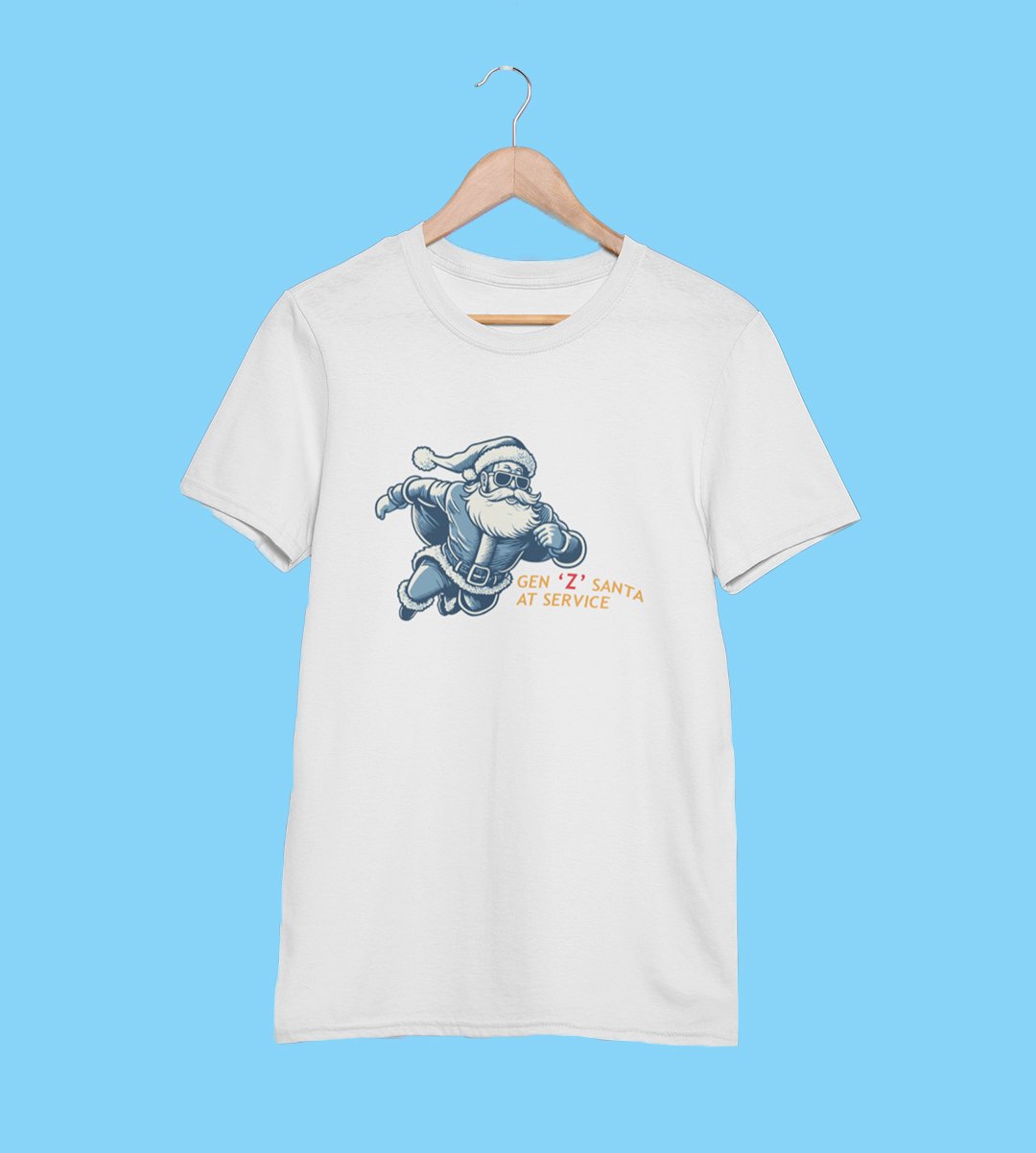 Gen-z Santa At Service : Printed T-shirt (White) Best Gift For Boys Girls