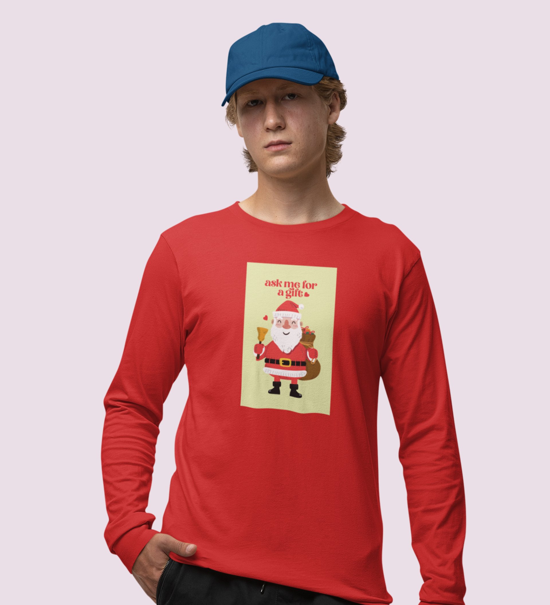 Generous Santa: Elegantly DesignedFull Sleeve T-shirt Red Best Gift For Boys Girls