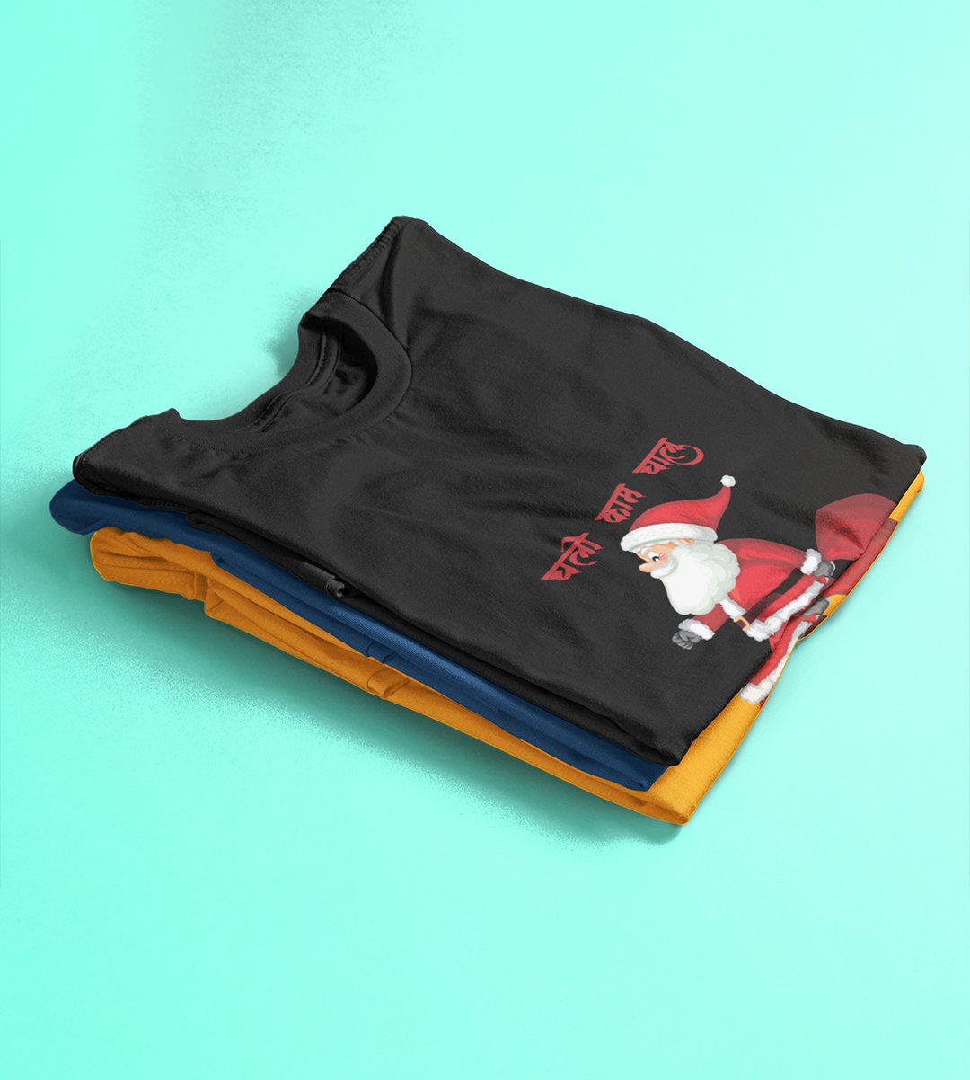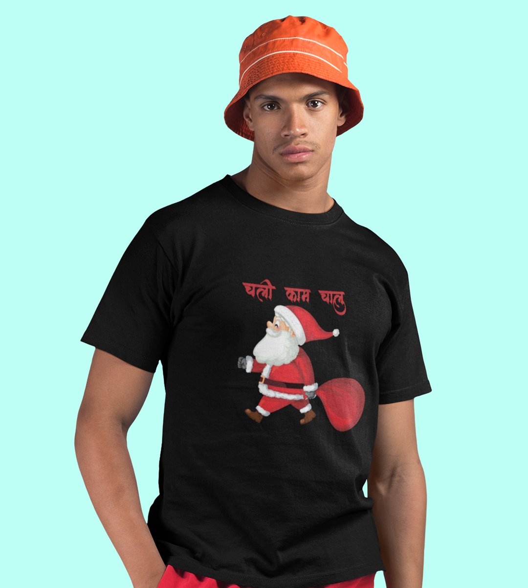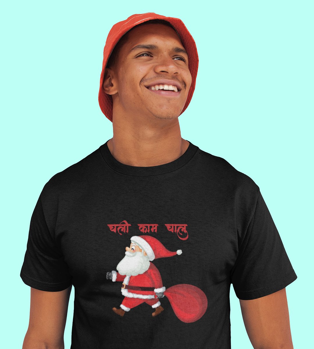 Get Back To Work Santa : Hydrate Festively with(Black) T-shirt - Leak-Proof, Marathi Printed Printed