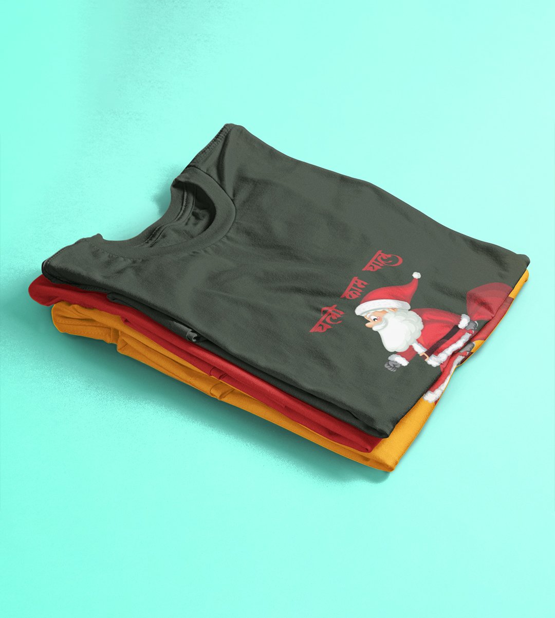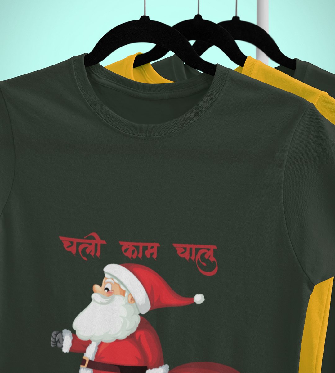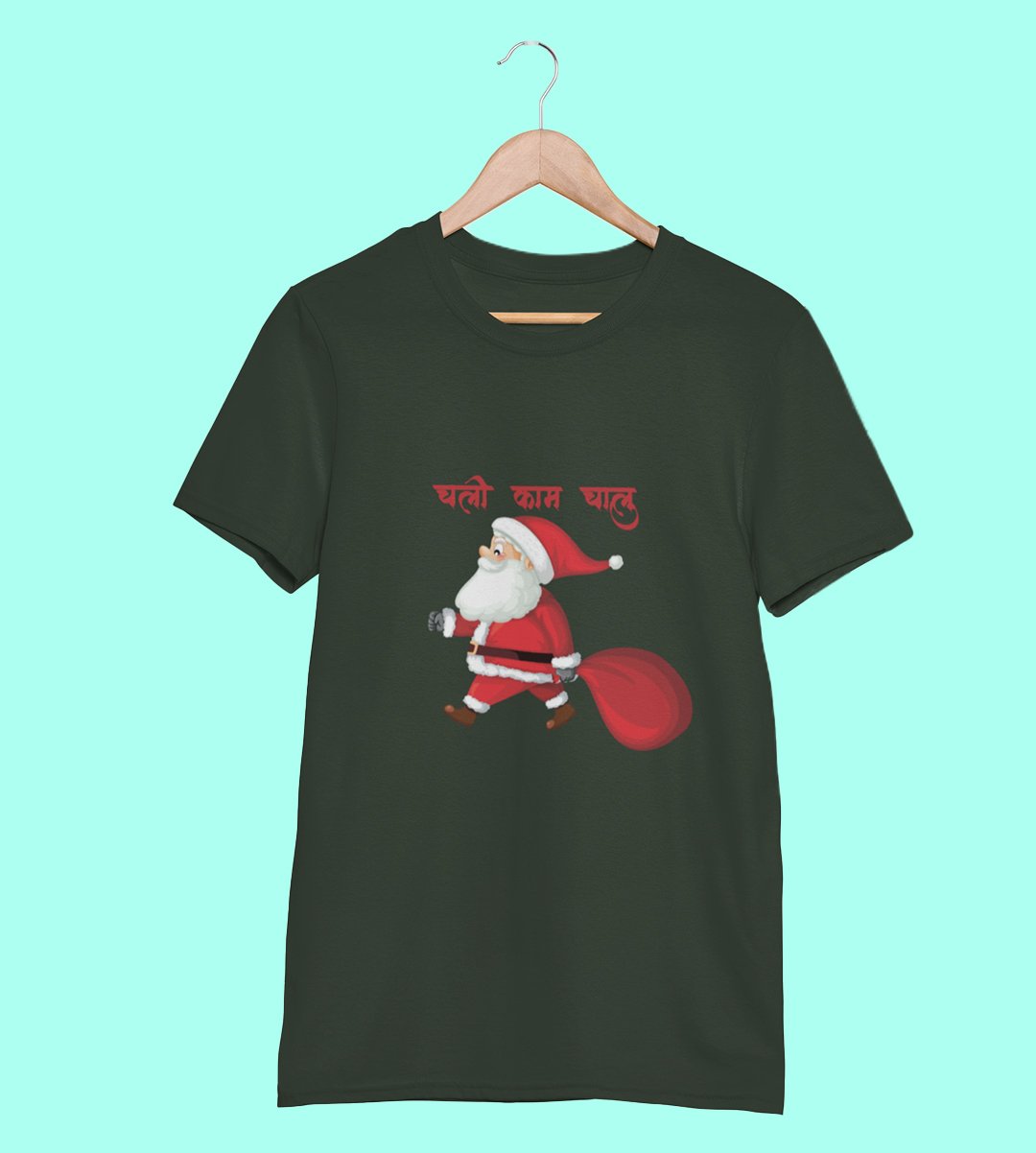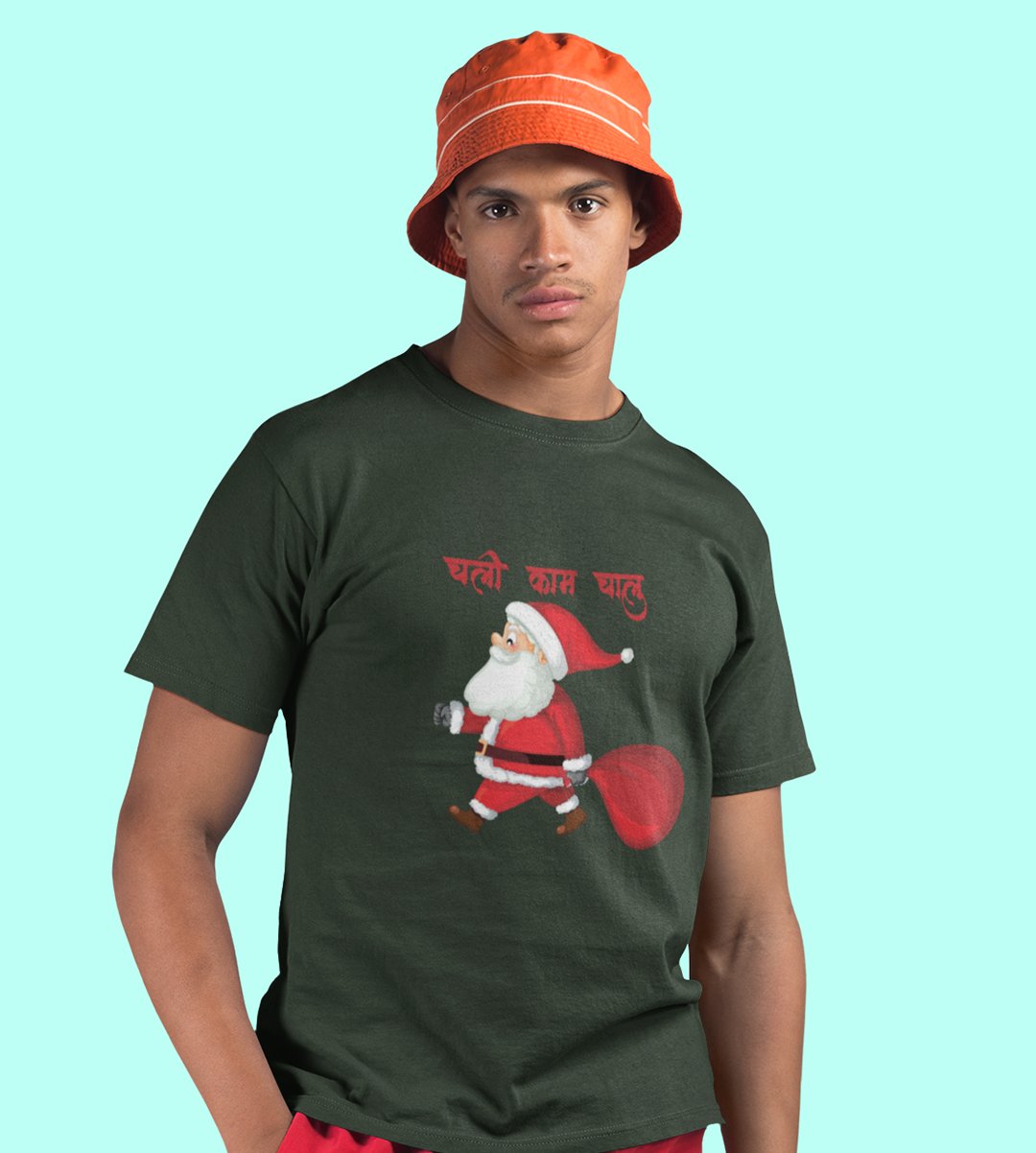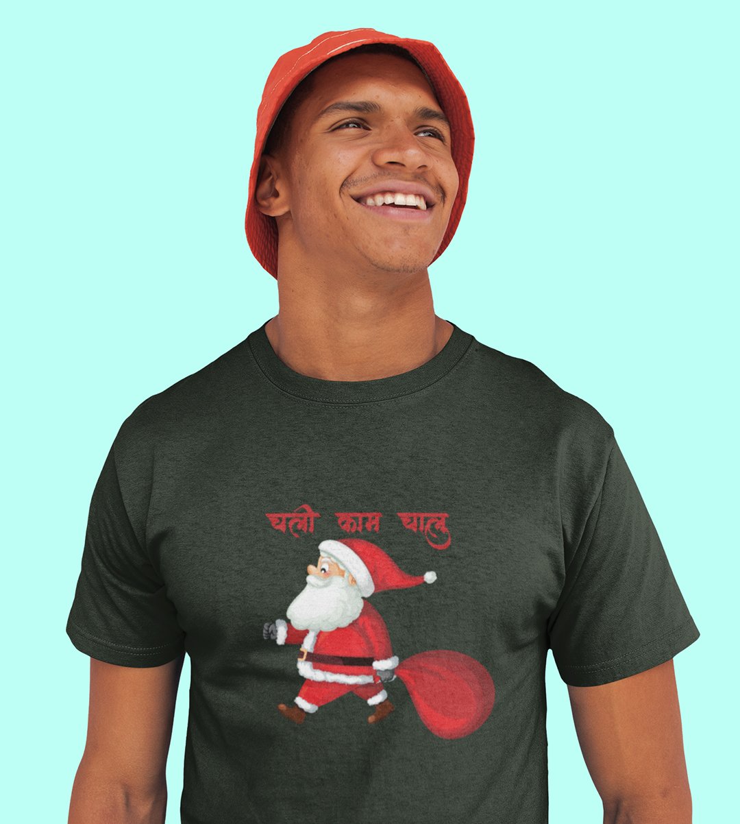 Get Back To Work Santa : Hydrate Festively with(Green) T-shirt - Leak-Proof, Marathi Printed Printed