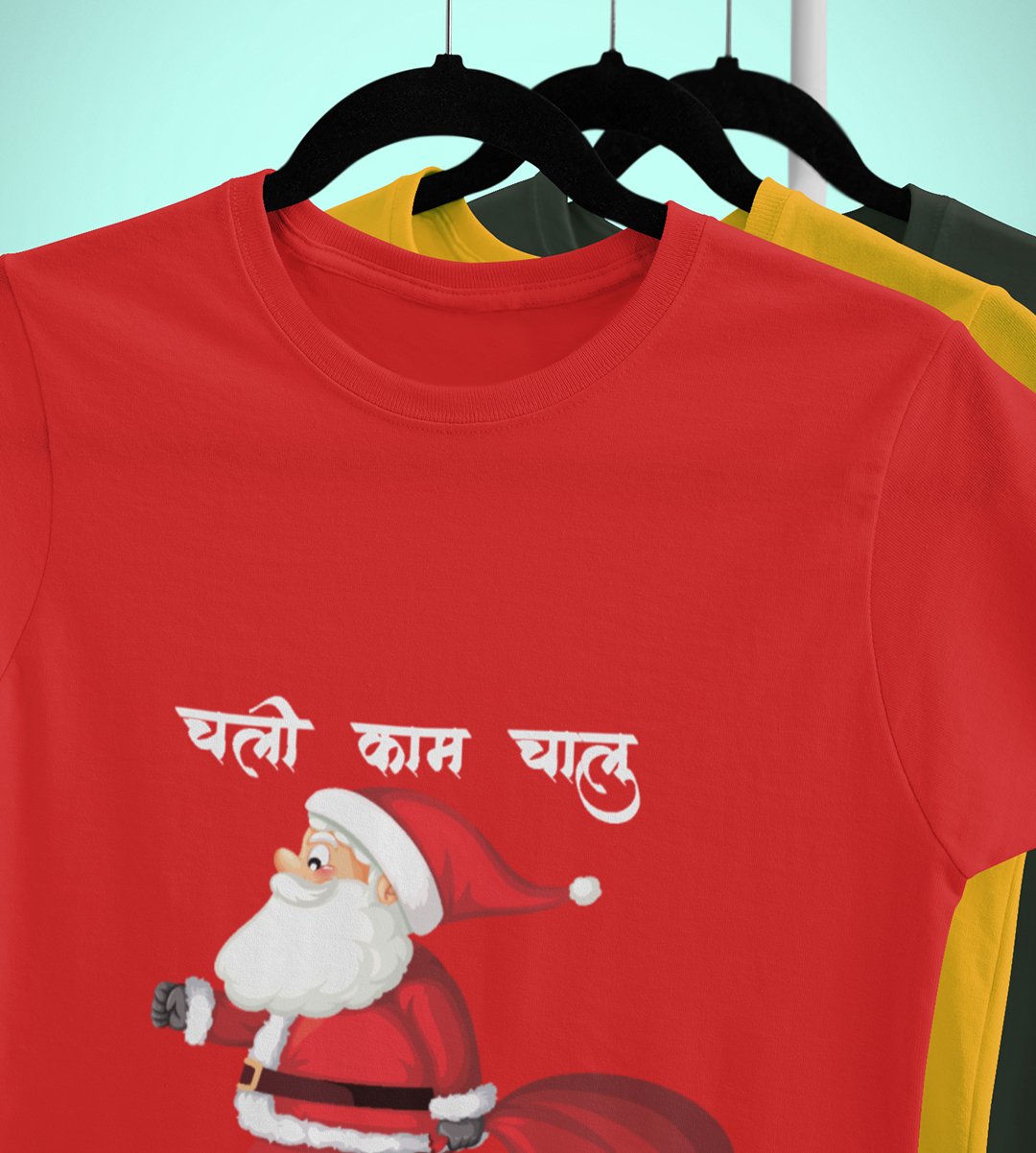Get Back To Work Santa : Hydrate Festively with(Red) T-shirt - Leak-Proof, Marathi Printed Printed
