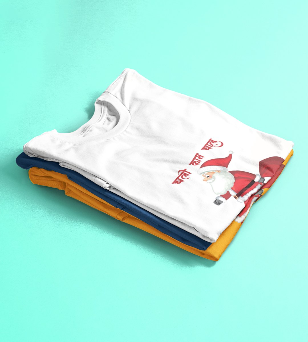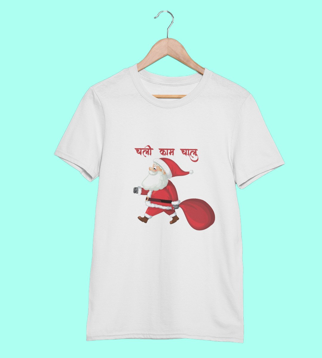 Get Back To Work Santa : Hydrate Festively with(White) T-shirt - Leak-Proof, Marathi Printed Printed