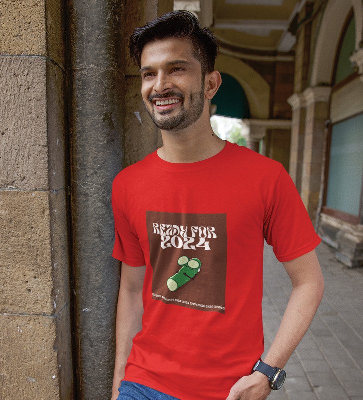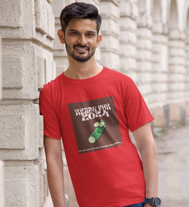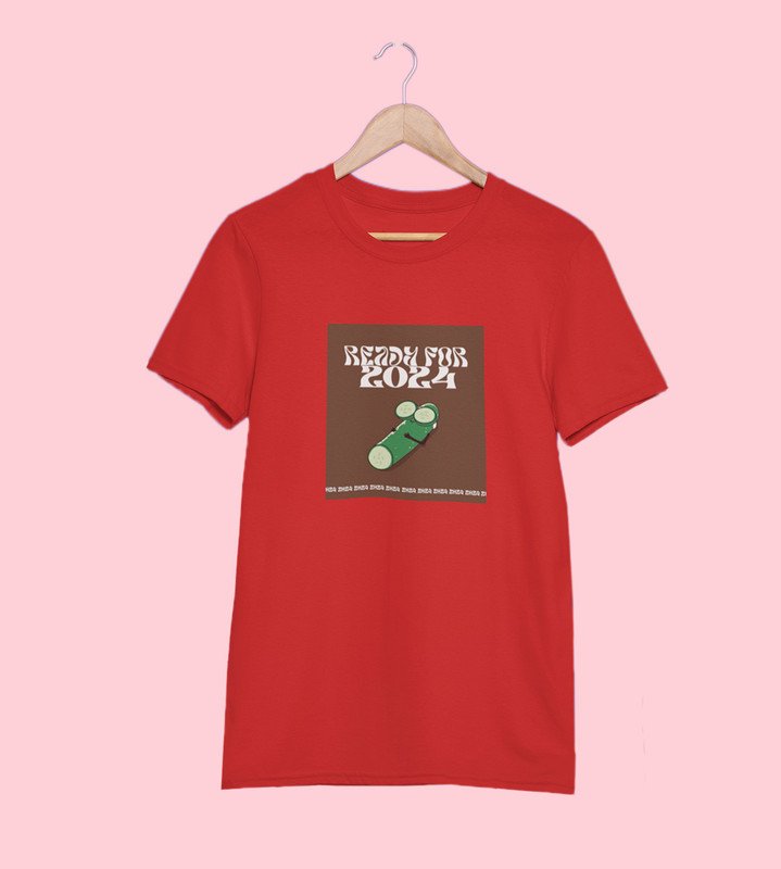 Get Ready For 2024 Red Printed T-shirt For Mens On New Year Theme Best Gift For New Year