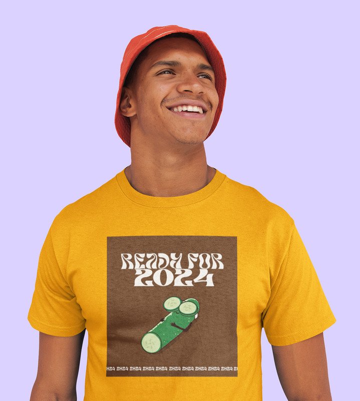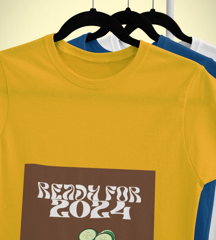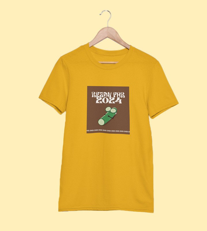 Get Ready For 2024 Yellow Printed T-shirt For Mens On New Year Theme Best Gift For New Year