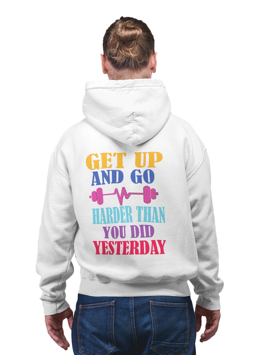 Get Up and Go, Harder printed artswear white hoodies for winter casual wear specially for Men