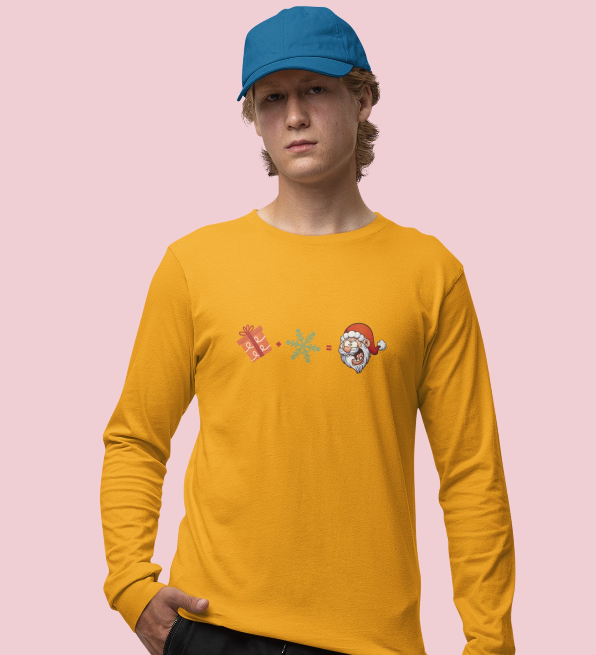 Gift + Winter = Santa: Unique DesignedFull Sleeve T-shirt Yellow Best Gift For Christmas Eve