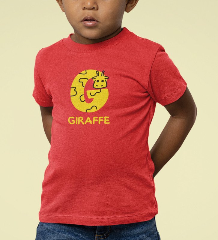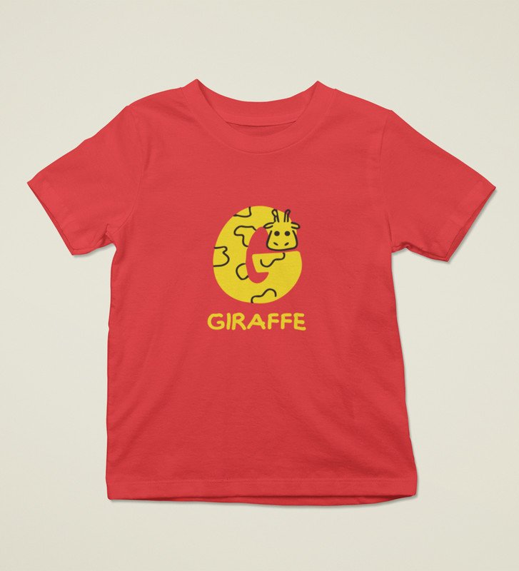 Giraffe, Boys Printed Crew Neck Tshirt (Red)