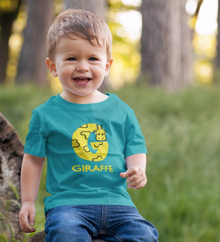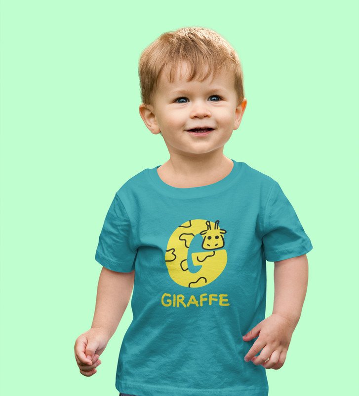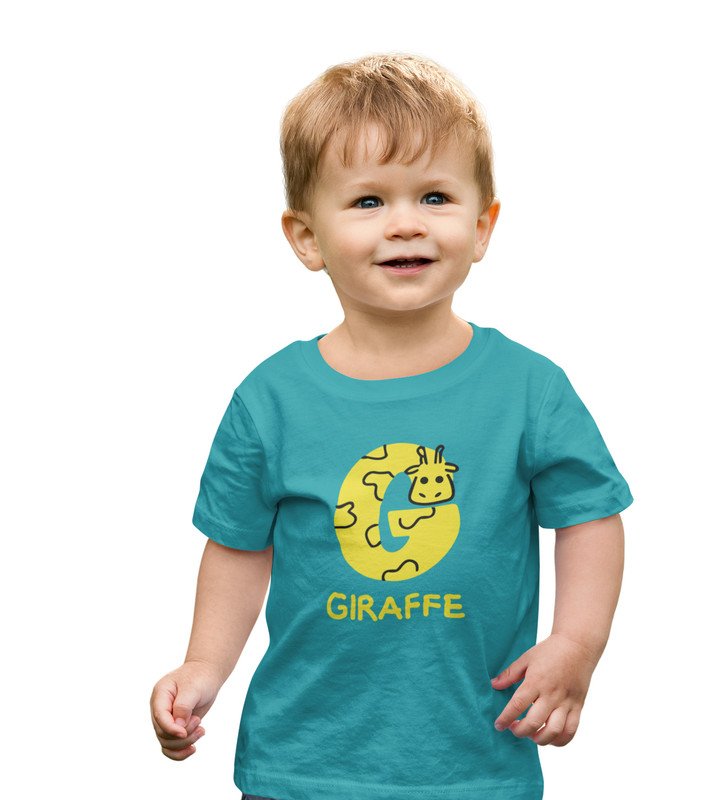 Giraffe, Boys Printed Crew Neck tshirt (teal)
