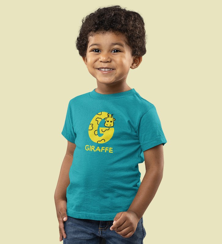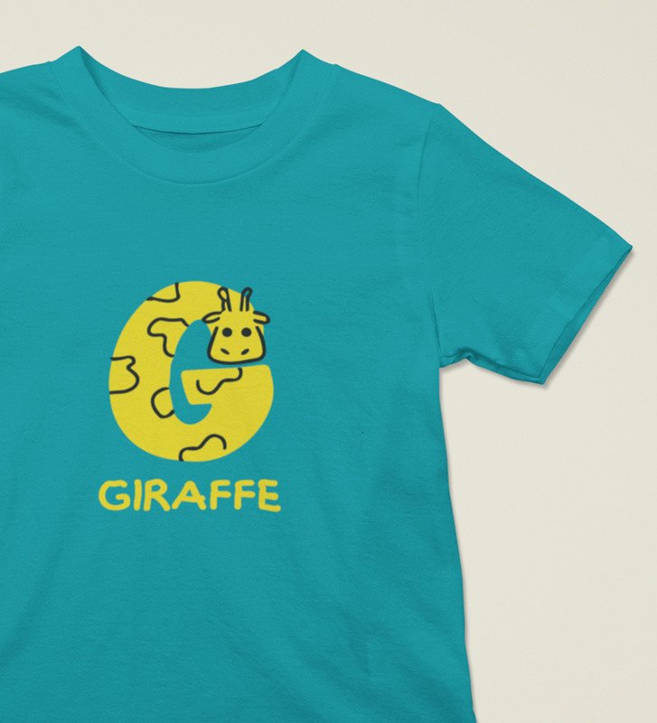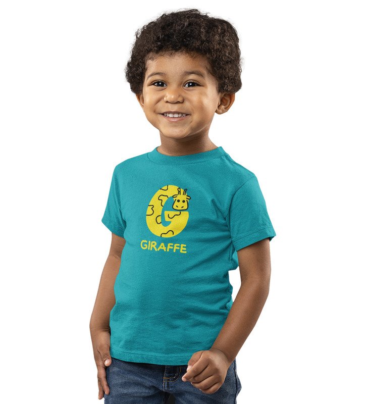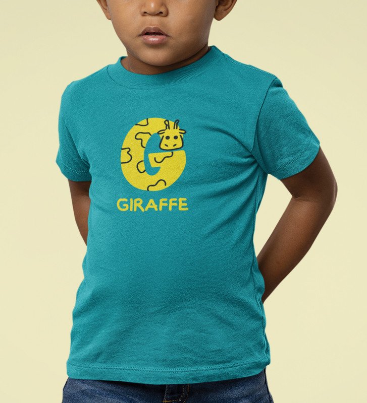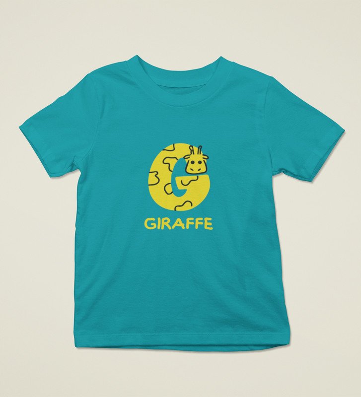 Giraffe, Boys Printed Crew Neck Tshirt (Teal)