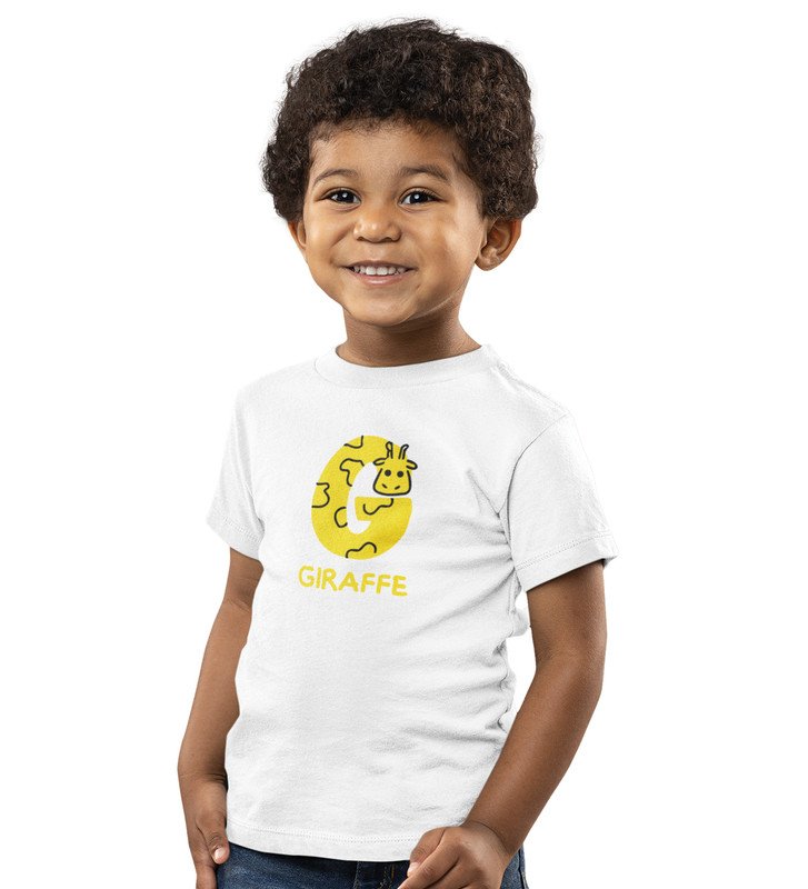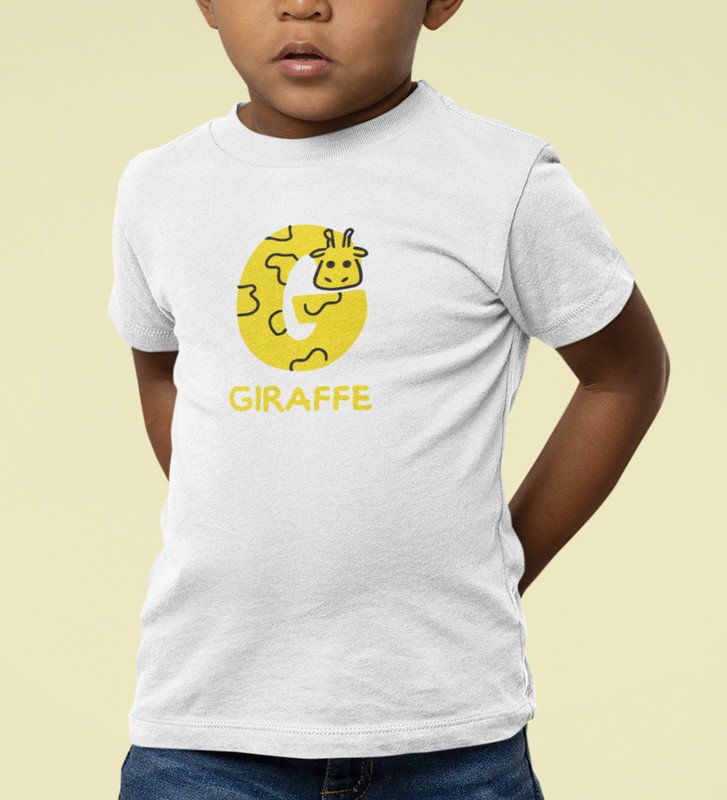 Giraffe, Boys Printed Crew Neck Tshirt (White)