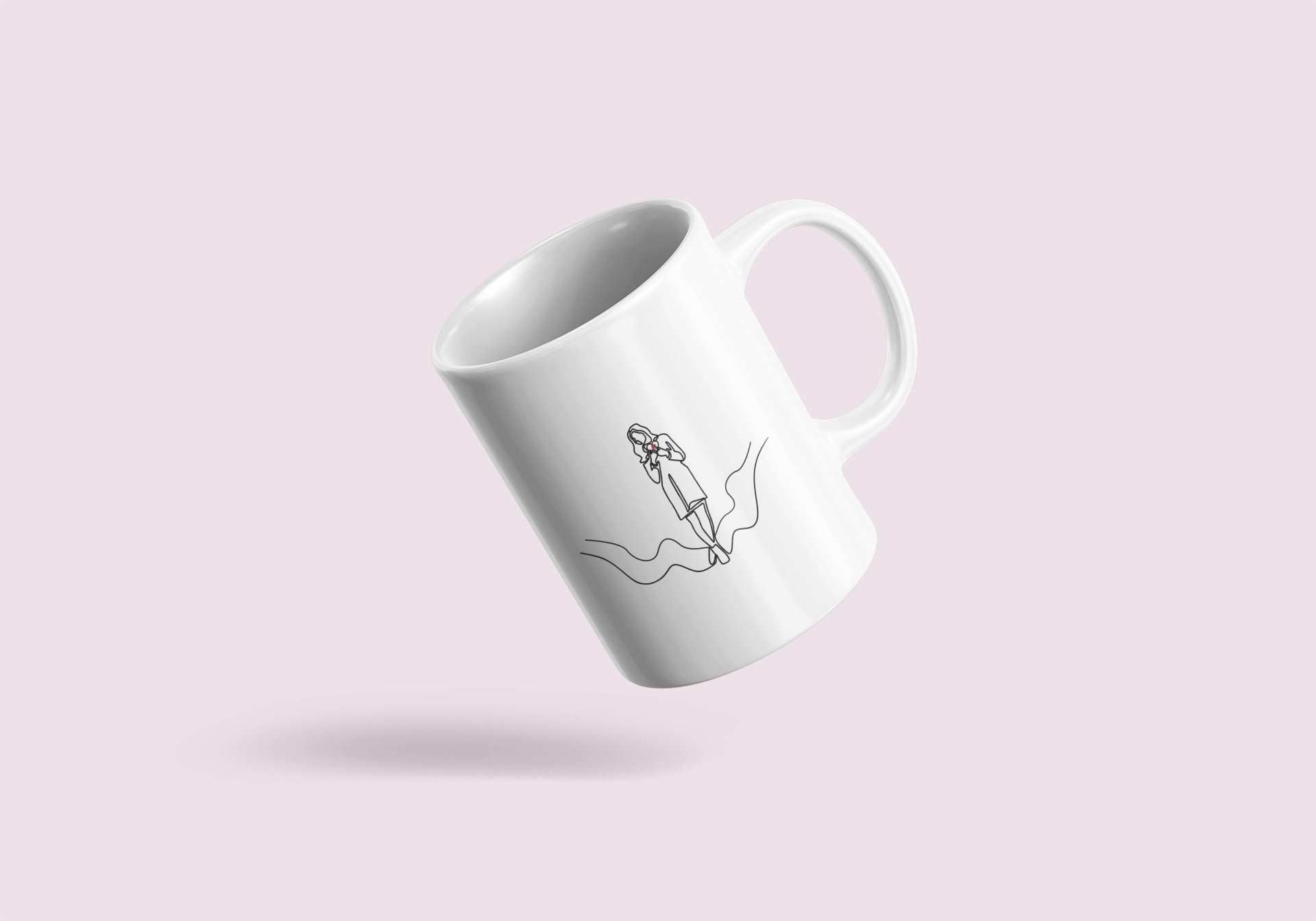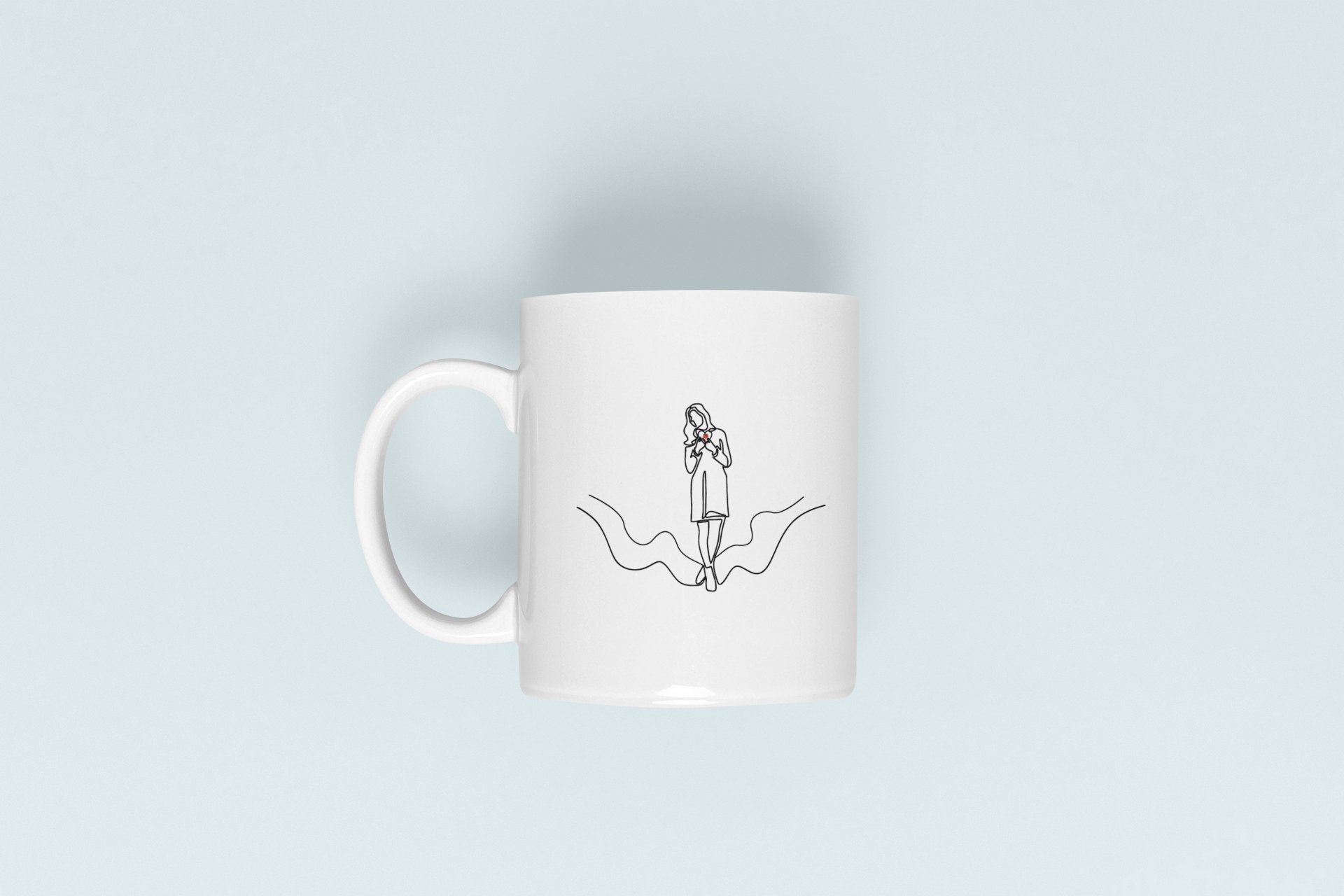 Girl- line art themed printed ceramic white coffee and tea mugs/ cups