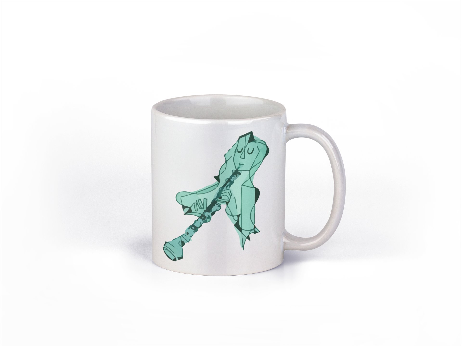 Girl Playing Shenai - music themed printed ceramic white coffee and tea mugs/ cups for music lovers