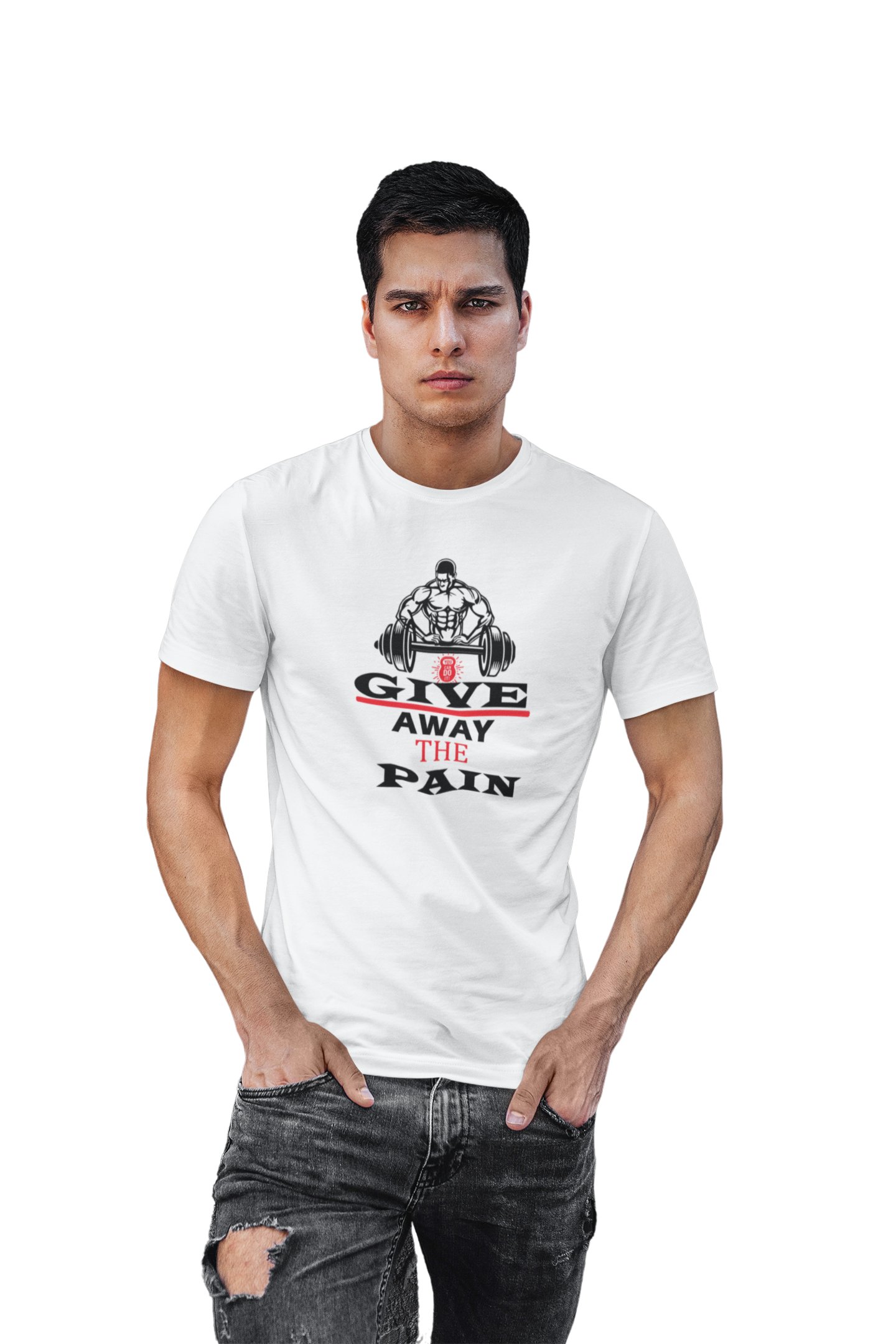 Give Away The Pain, Round Neck Gym Tshirt (White Tshirt) - Clothes for Gym Lovers - Suitable for Gym Going Person - Foremost Gifting Material for Your Friends and Close Ones