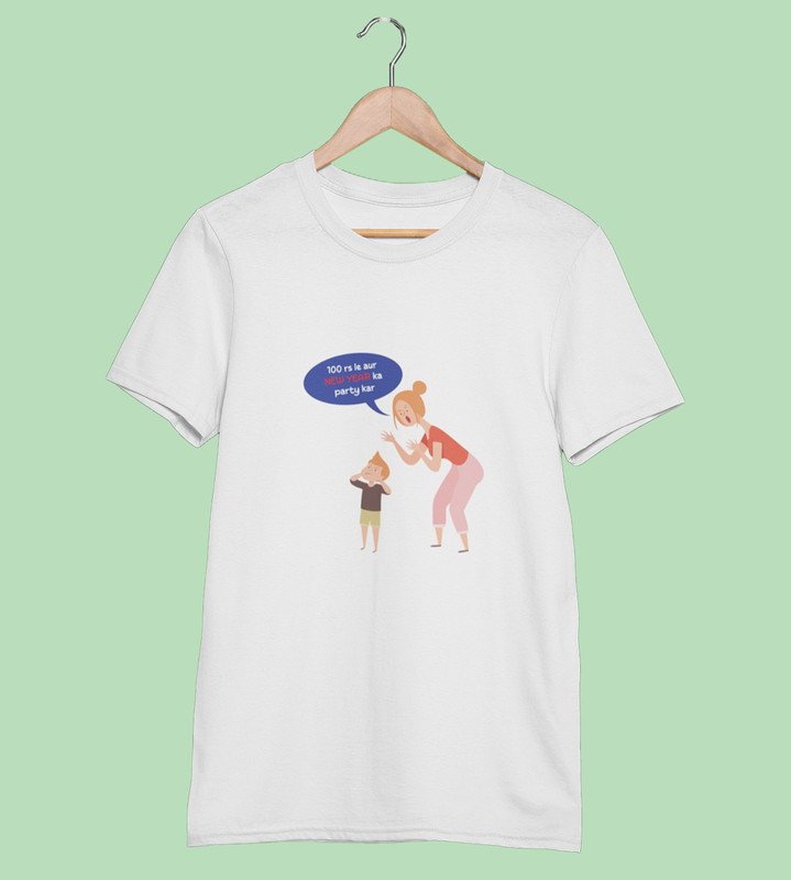 Go Enjoy Your Party WhitePrinted T-shirt For Mens On New Year Theme