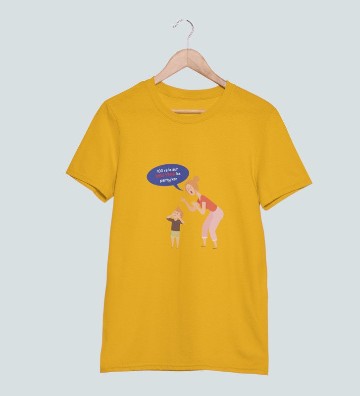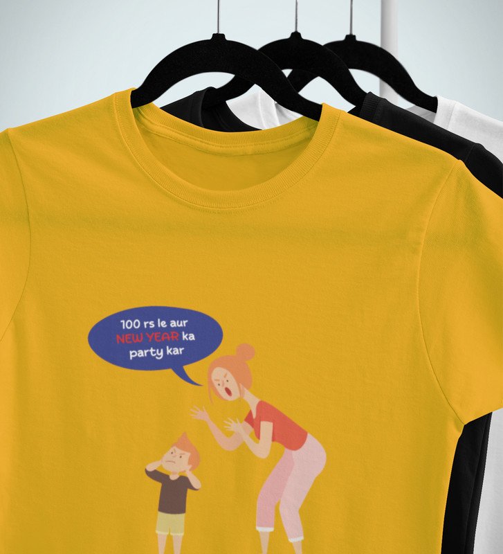 Go Enjoy Your Party YellowPrinted T-shirt For Mens On New Year Theme