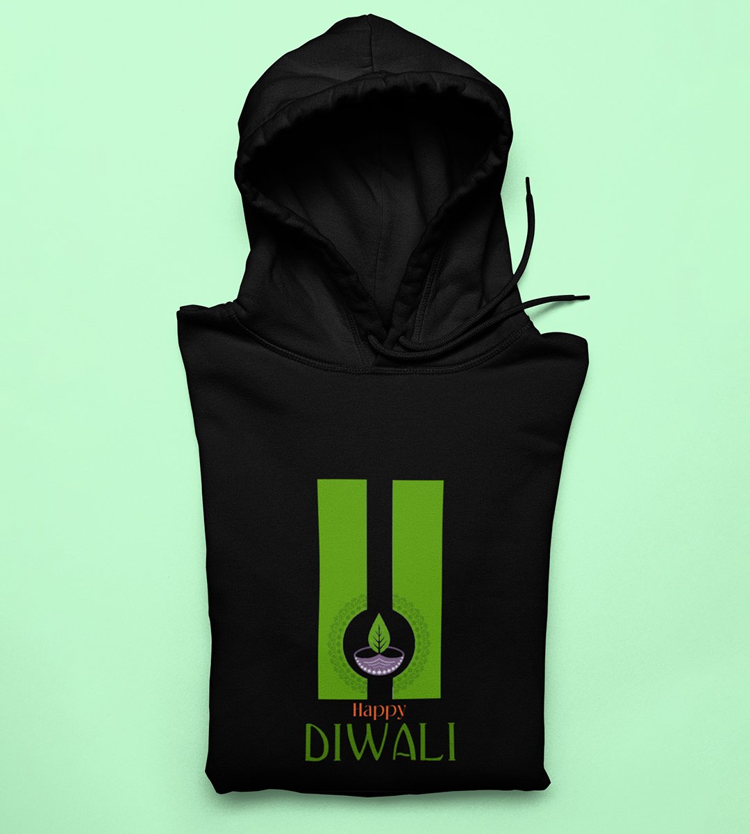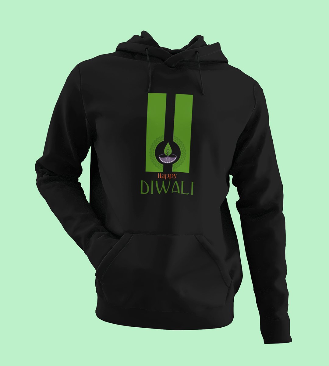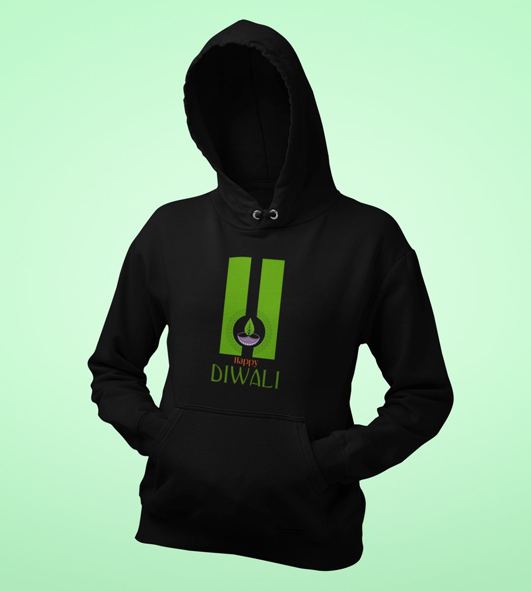 Go green diwali printed diwali themed black Hoodie specially for diwali festival