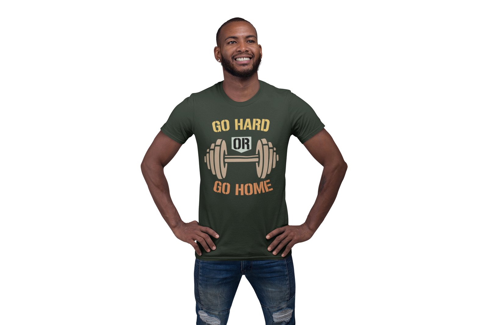 Go Hard or Go Home, Brown Short Dumble, Round Neck Gym Tshirt - Foremost Gifting Material for Your Friends and Close Ones