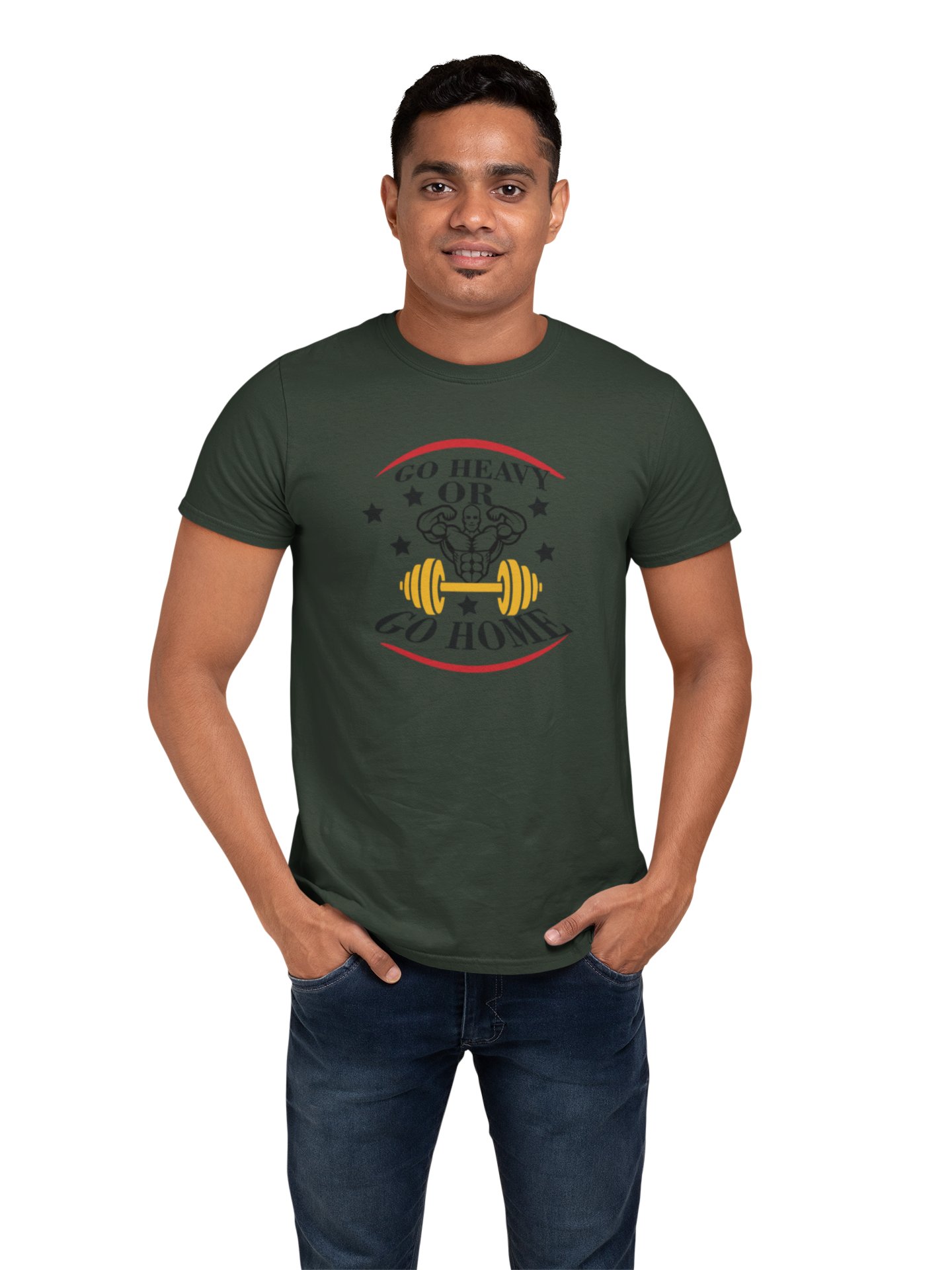Go Heavy or Go Home Round Neck Gym Tshirt (BG Black And Yellow) - Foremost Gifting Material for Your Friends and Close Ones