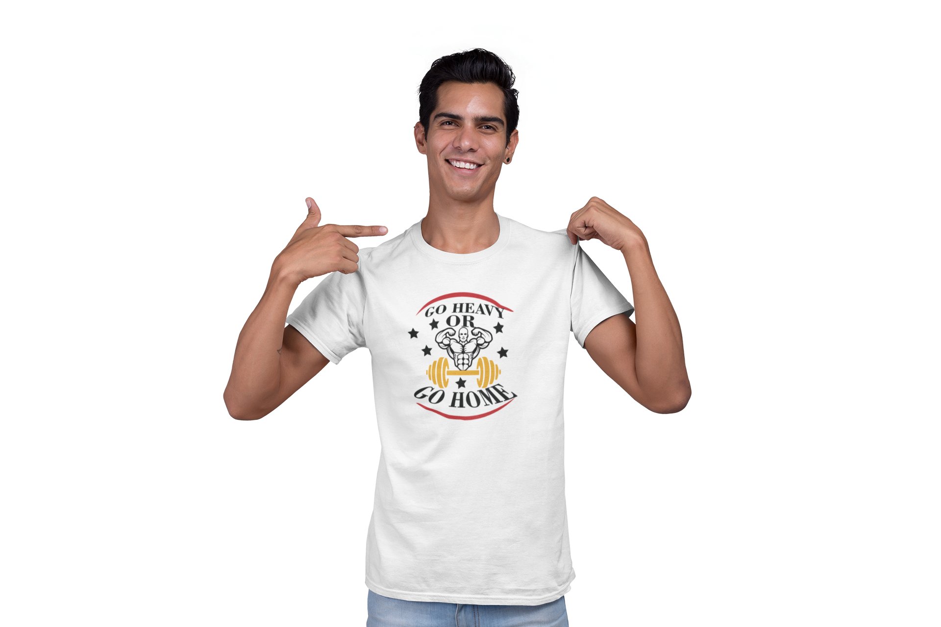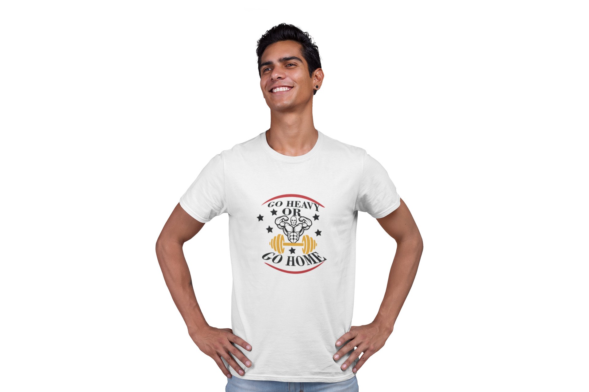 Go Heavy or Go Home Round Neck Gym Tshirt (White Tshirt) - Clothes for Gym Lovers - Suitable for Gym Going Person - Foremost Gifting Material for Your Friends and Close Ones