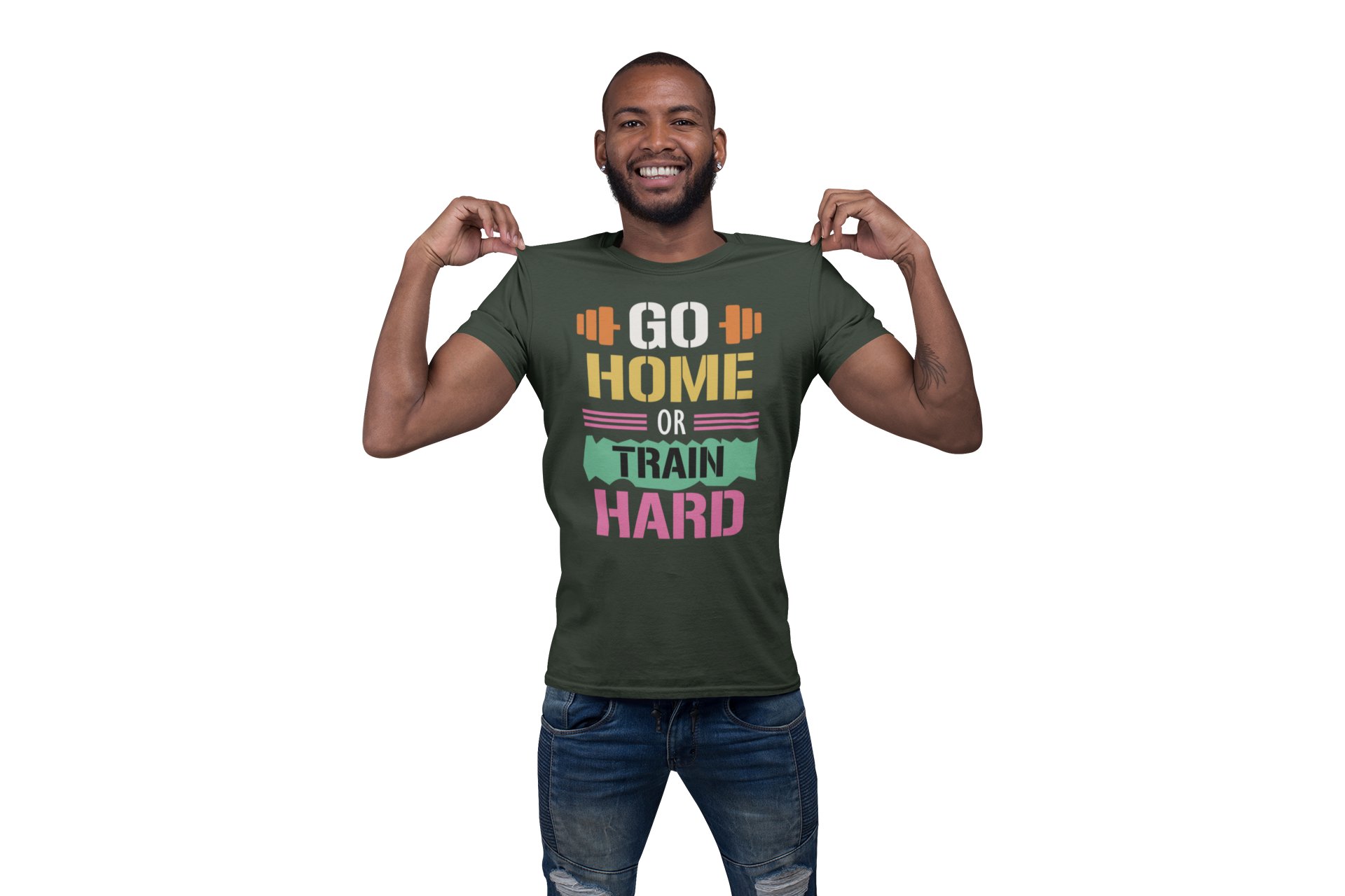 Go Home and Train Hard, Round Neck Gym Tshirt (Pink Straight Lines) - Foremost Gifting Material for Your Friends and Close Ones
