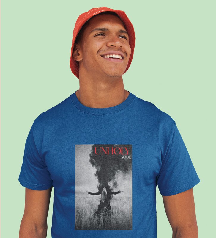 Godless Soul Bold Impressions: Blue Men's Trendy Front Graphic Tee with Round Neck
