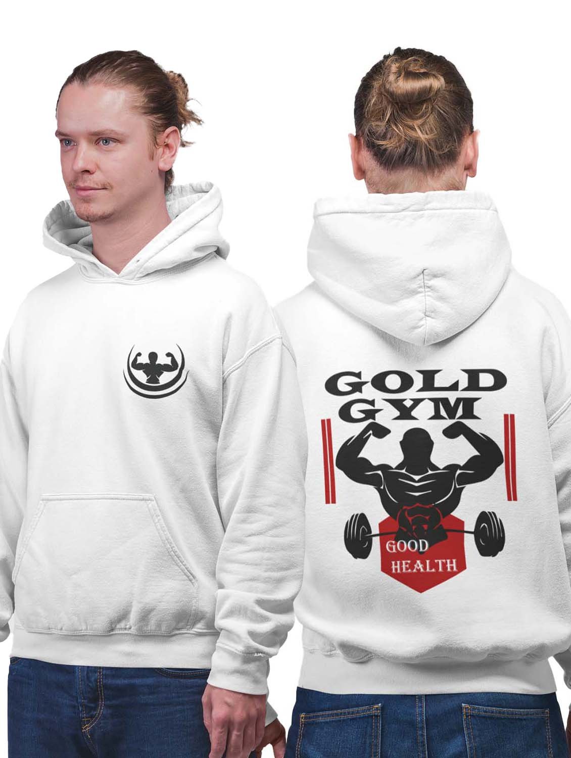 Gold Gym, Good Health printed artswear white hoodies for winter casual wear specially for Men