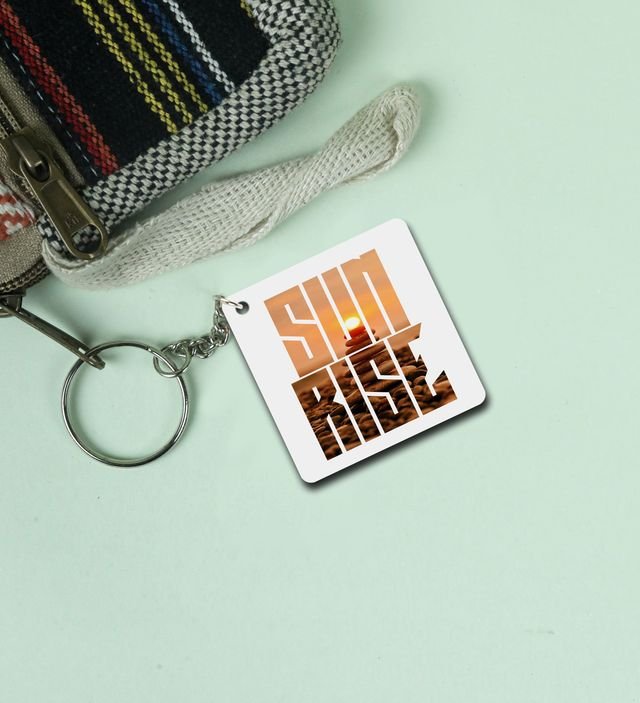 Golden Morning Over Still Pebble Path Printed Keychain Pack of 2