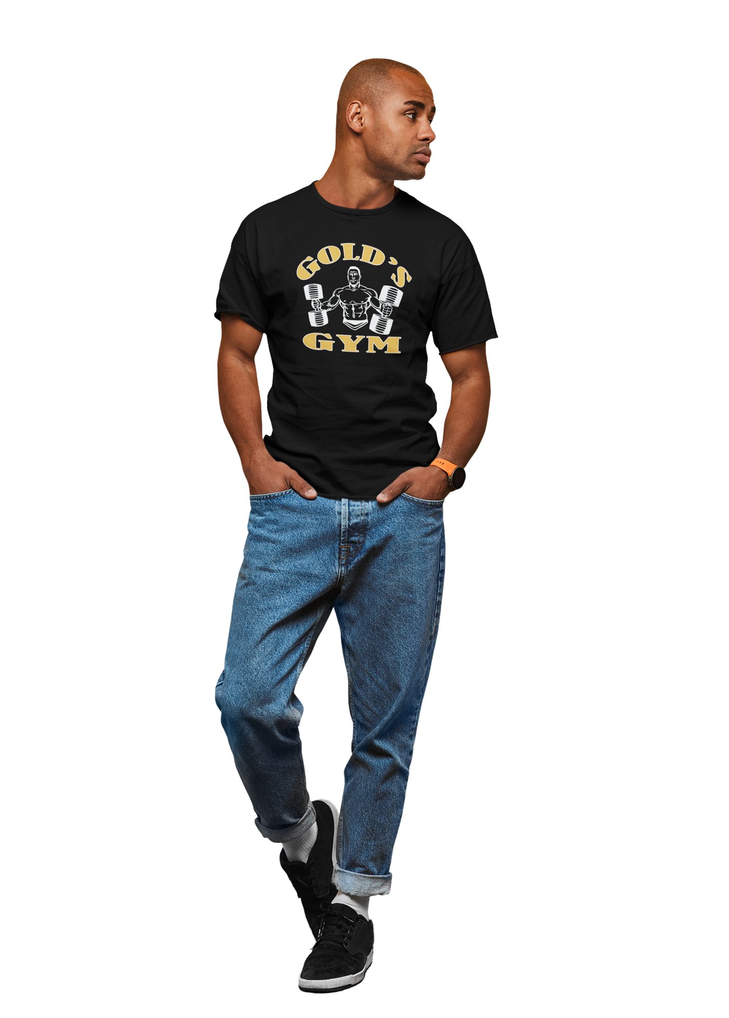Gold's Gym, (BG Yellow and White), Round Neck Gym Tshirt (Black Tshirt) - Clothes for Gym Lovers - Suitable for Gym Going Person - Foremost Gifting Material for Your Friends and Close Ones