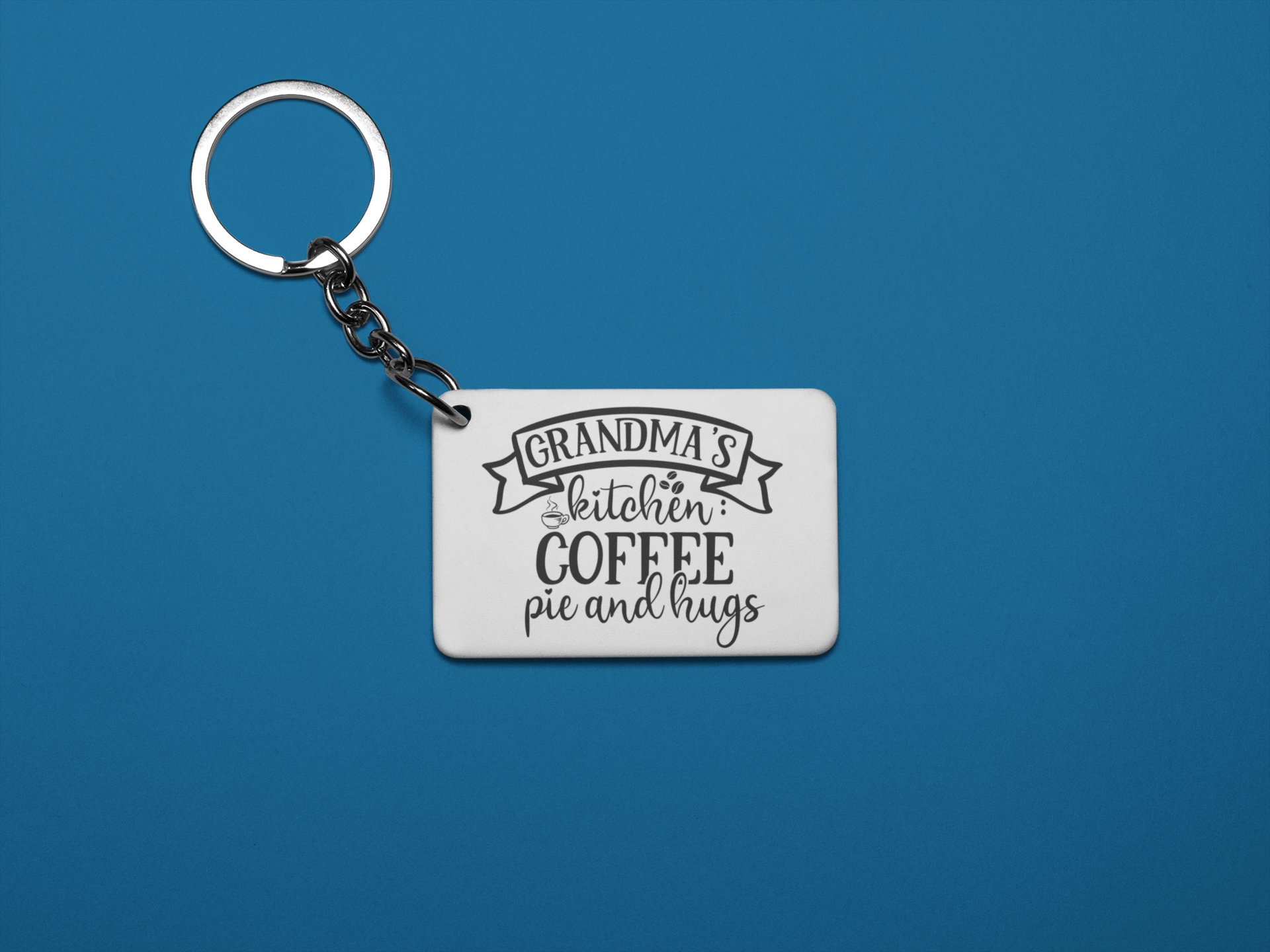 Grandma's Kitchen Coffee Pie And Hugs - White - Designable Keychains(Combo Set Of 2)