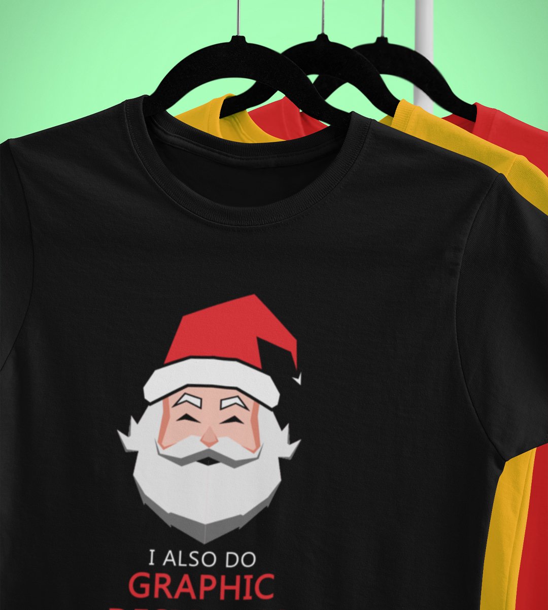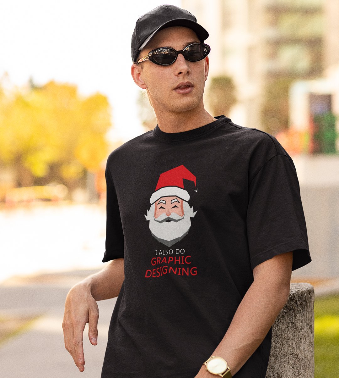 Graphic Lover Santa: Good Vibes Printed T-shirt (Black) Unique Gift For New Year Boys Girls