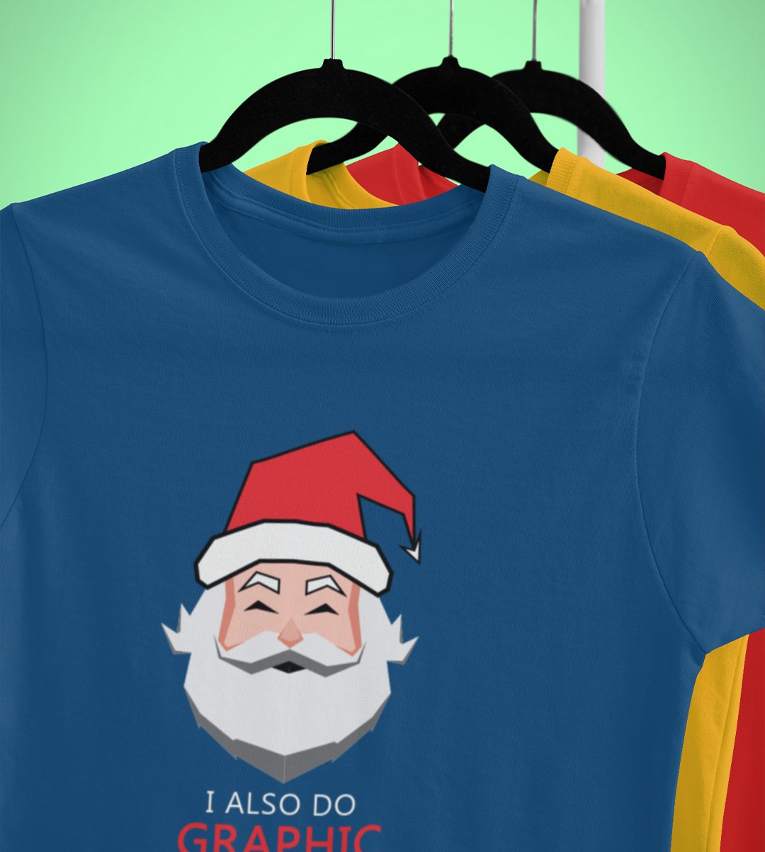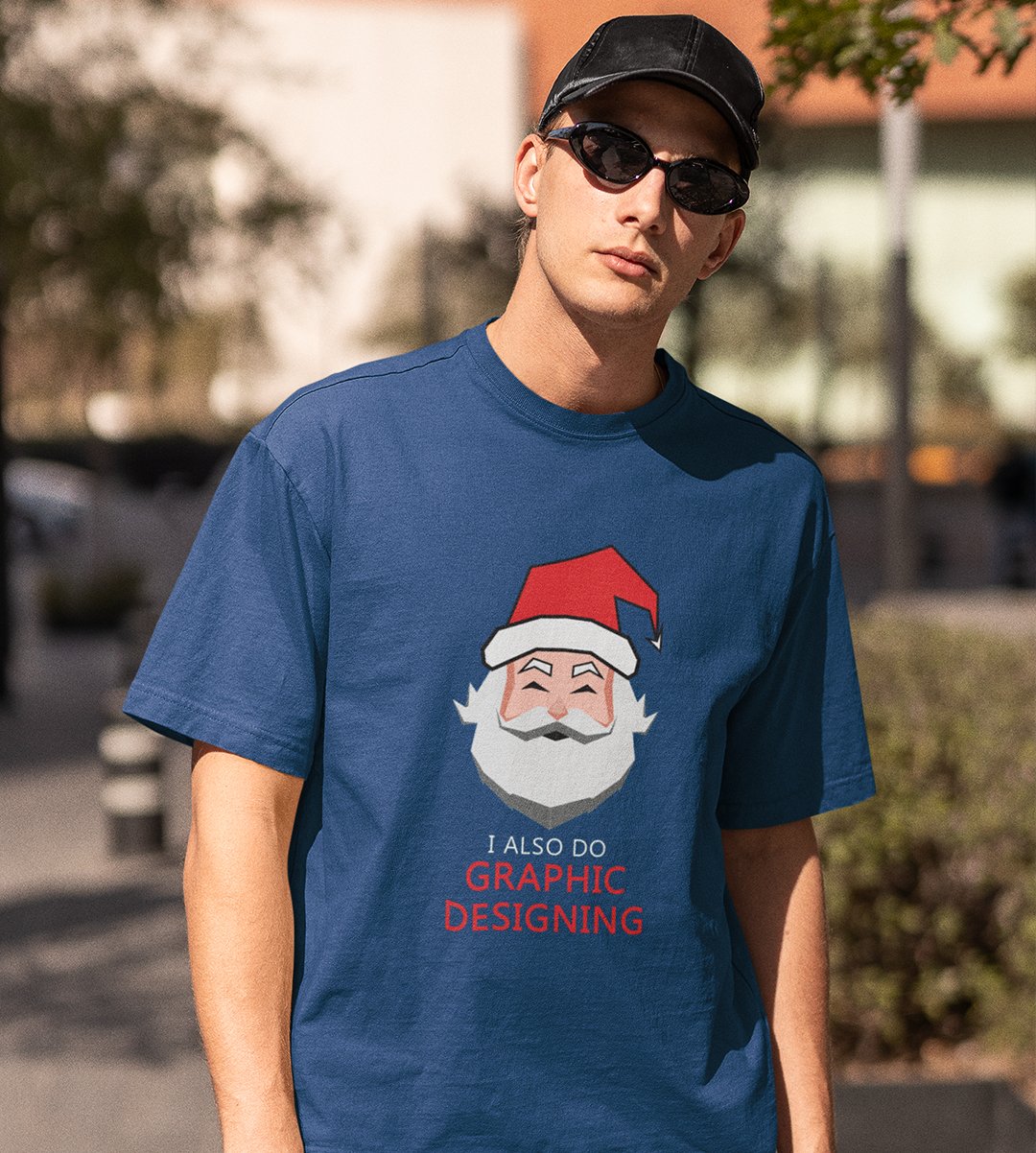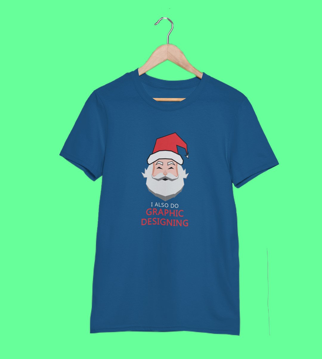 Graphic Lover Santa: Good Vibes Printed T-shirt (Blue) Unique Gift For New Year Boys Girls
