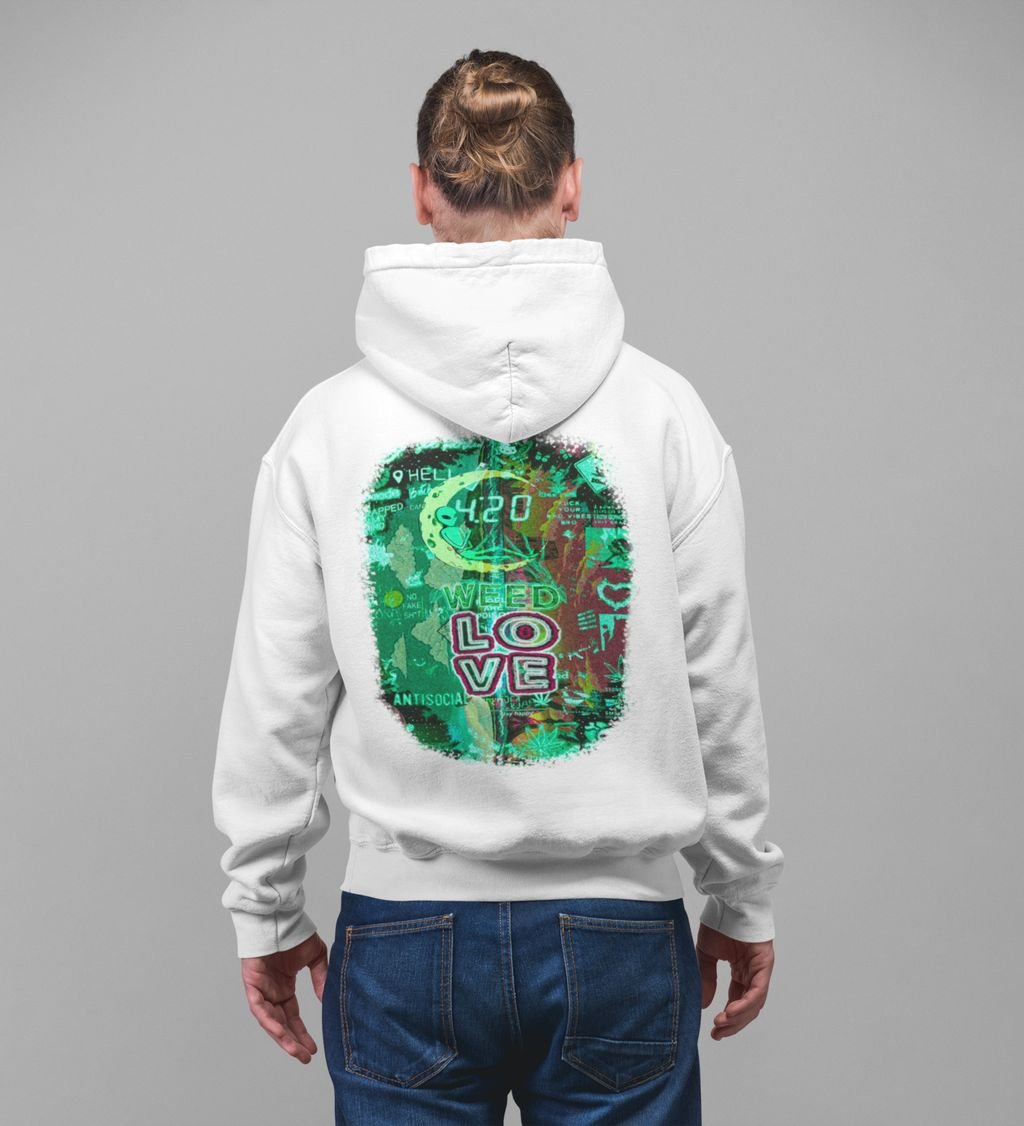 Green Love Where Comfort Meets Conscious Living White Cotton Printed Hoodie For Men