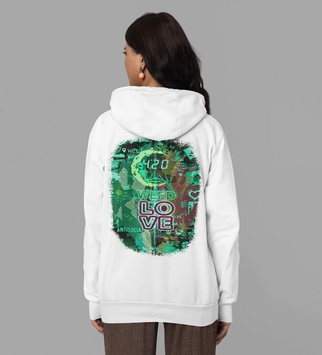 Green Love Where Comfort Meets Conscious Living White Cotton Printed Hoodie For Women