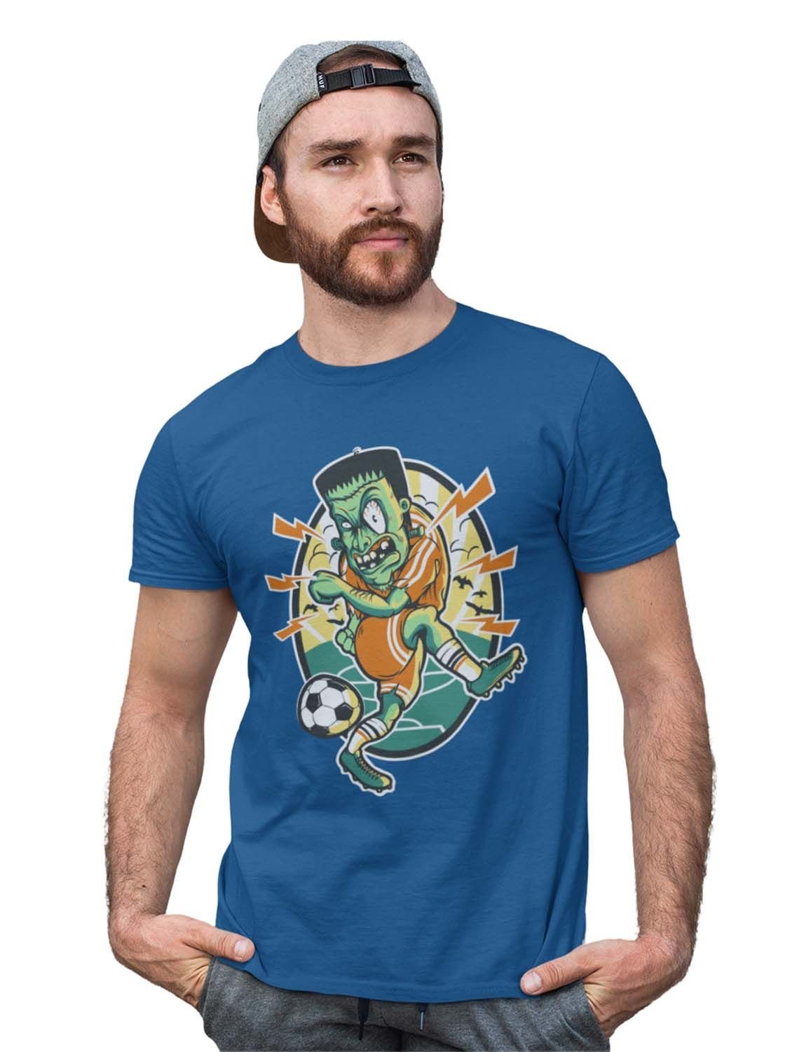 Frankinston's Soccer Blue Round Neck Cotton Half Sleeved T-Shirt with Printed Graphics