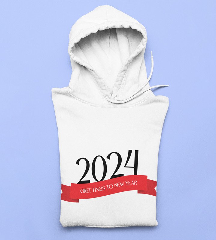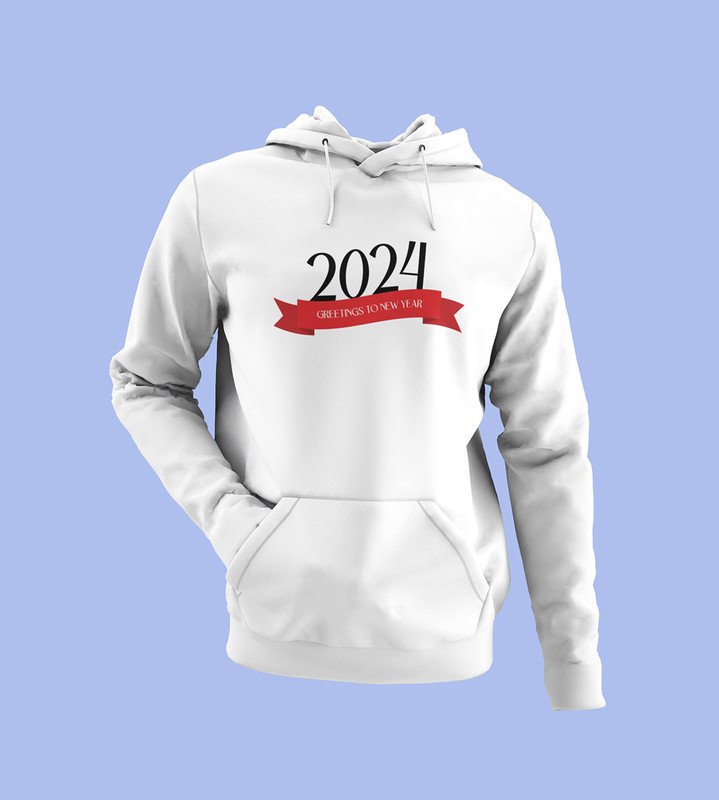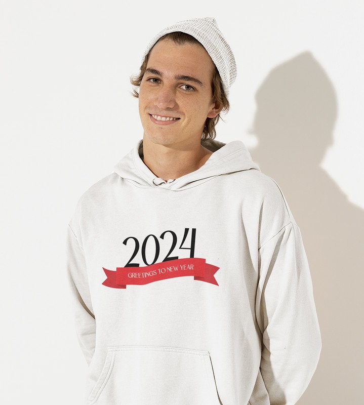 Greetings For New Year, White New Year Printed Hoodies For Mens