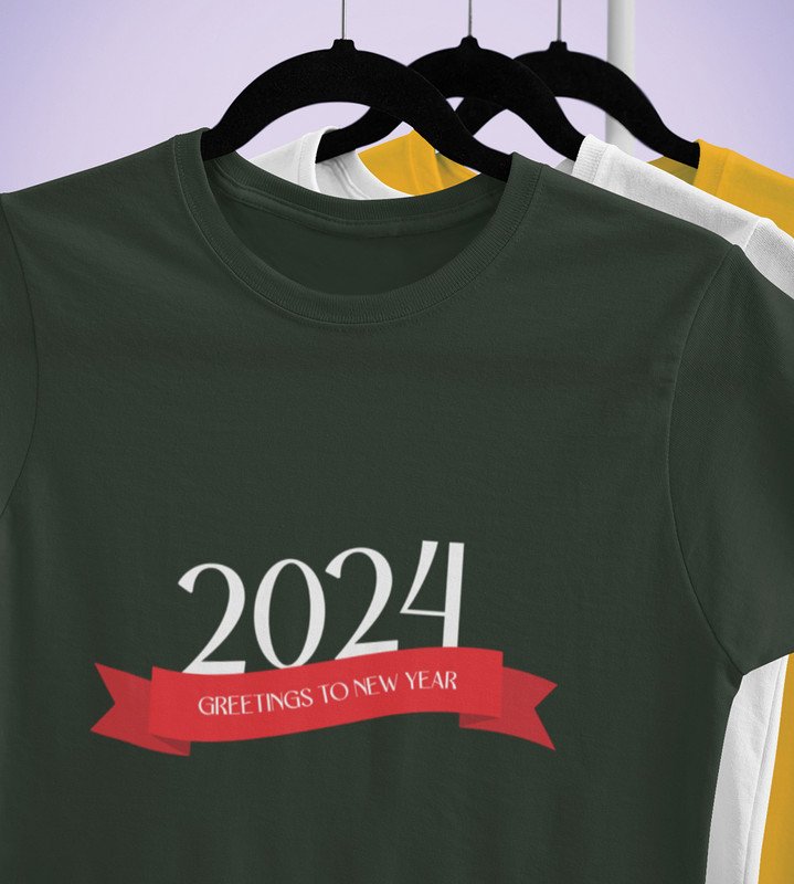 Greetings For New YearGreen New Year Printed T-shirt For Mens