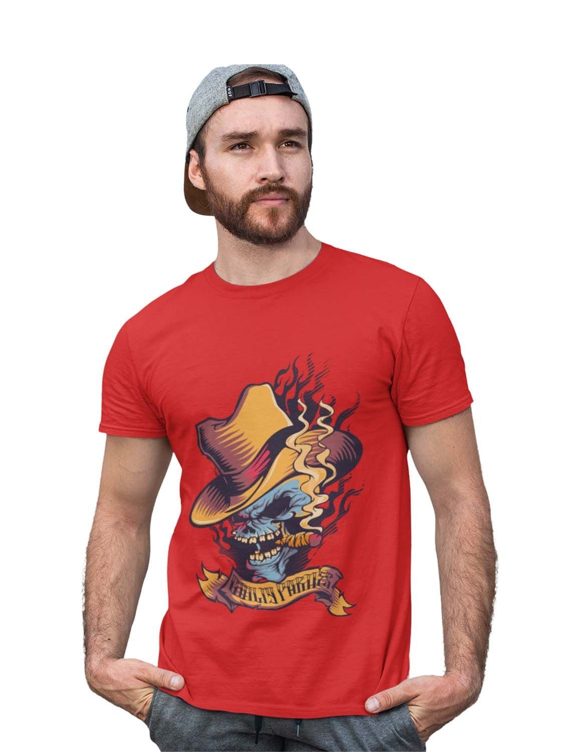 Guilty Parties Red Round Neck Cotton Half Sleeved T-Shirt with Printed Graphics