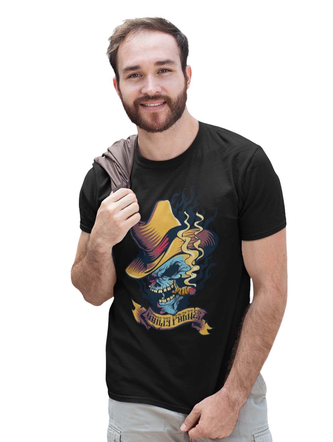 Guilty Parties Black Round Neck Cotton Half Sleeved T-Shirt with Printed Graphics