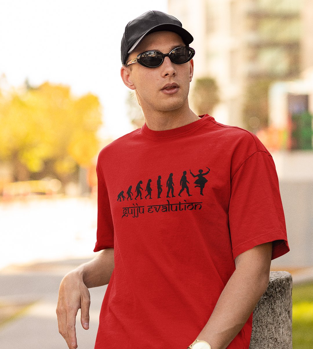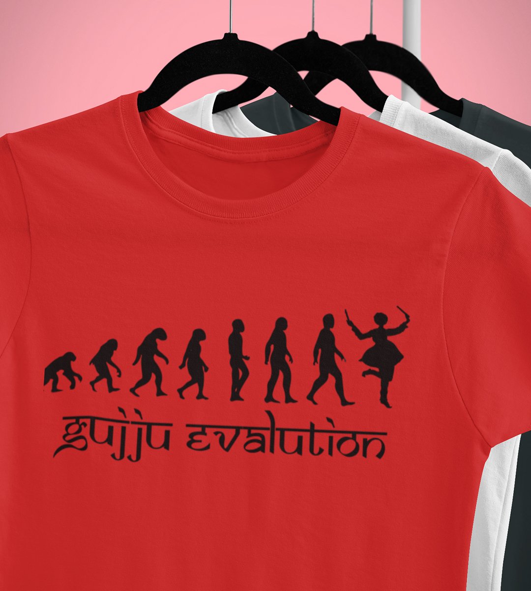 Gujju evaluation printed unisex adults round neck cotton half-sleeve red tshirt specially for Navratri festival/ Durga puja