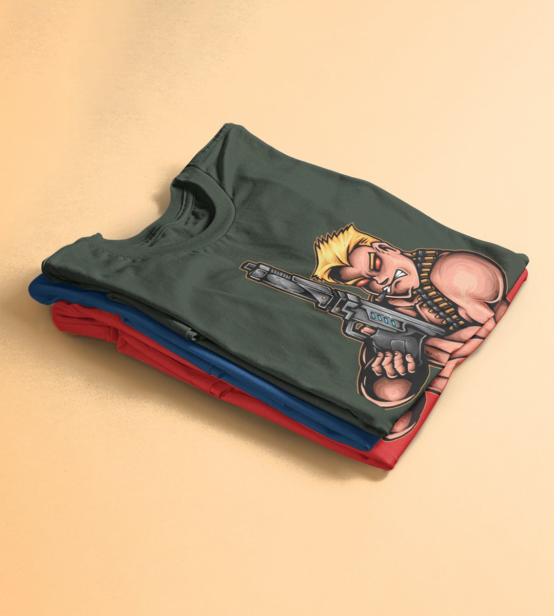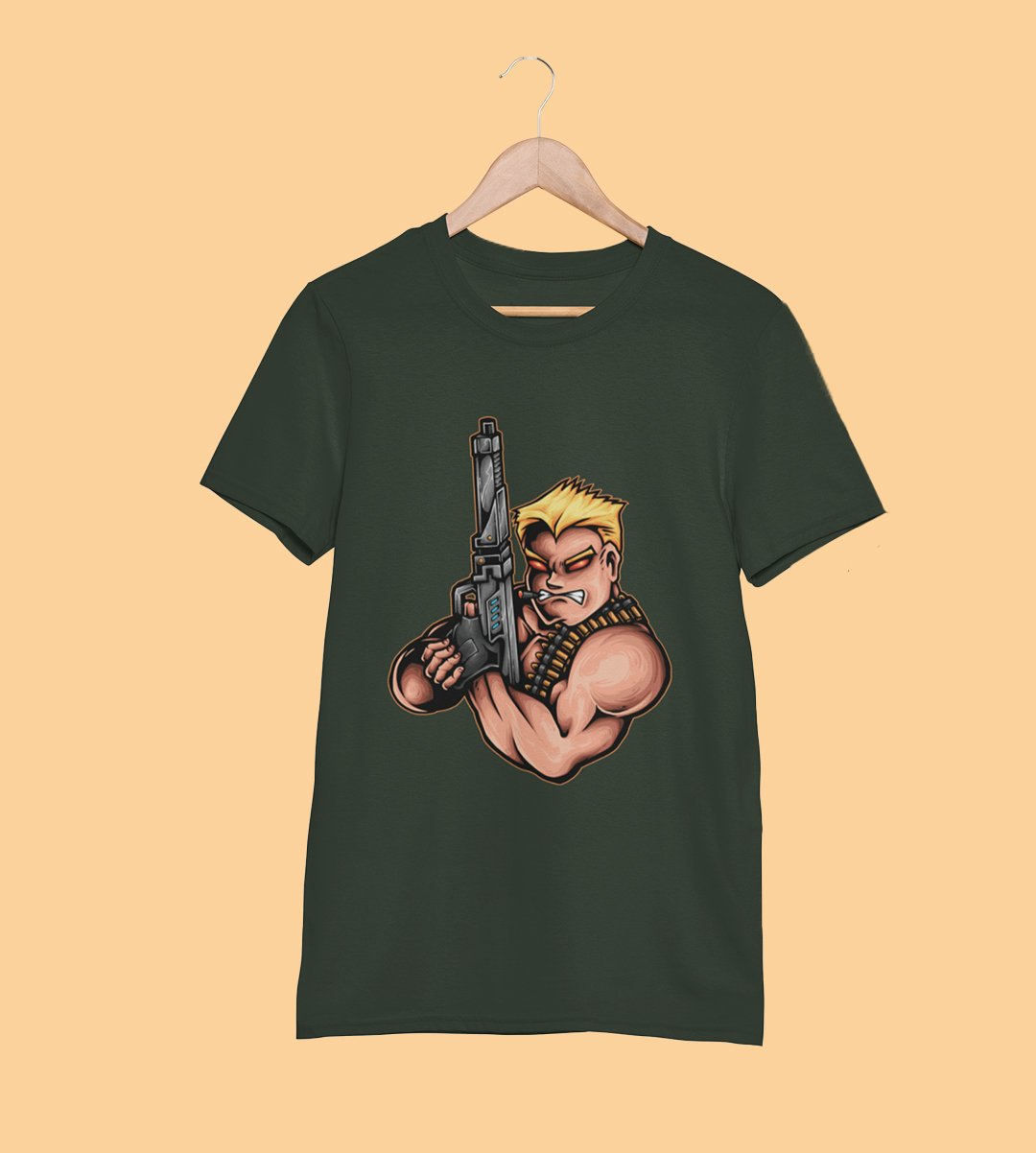 Gun man Illustration art -round crew neck cotton tshirts for men