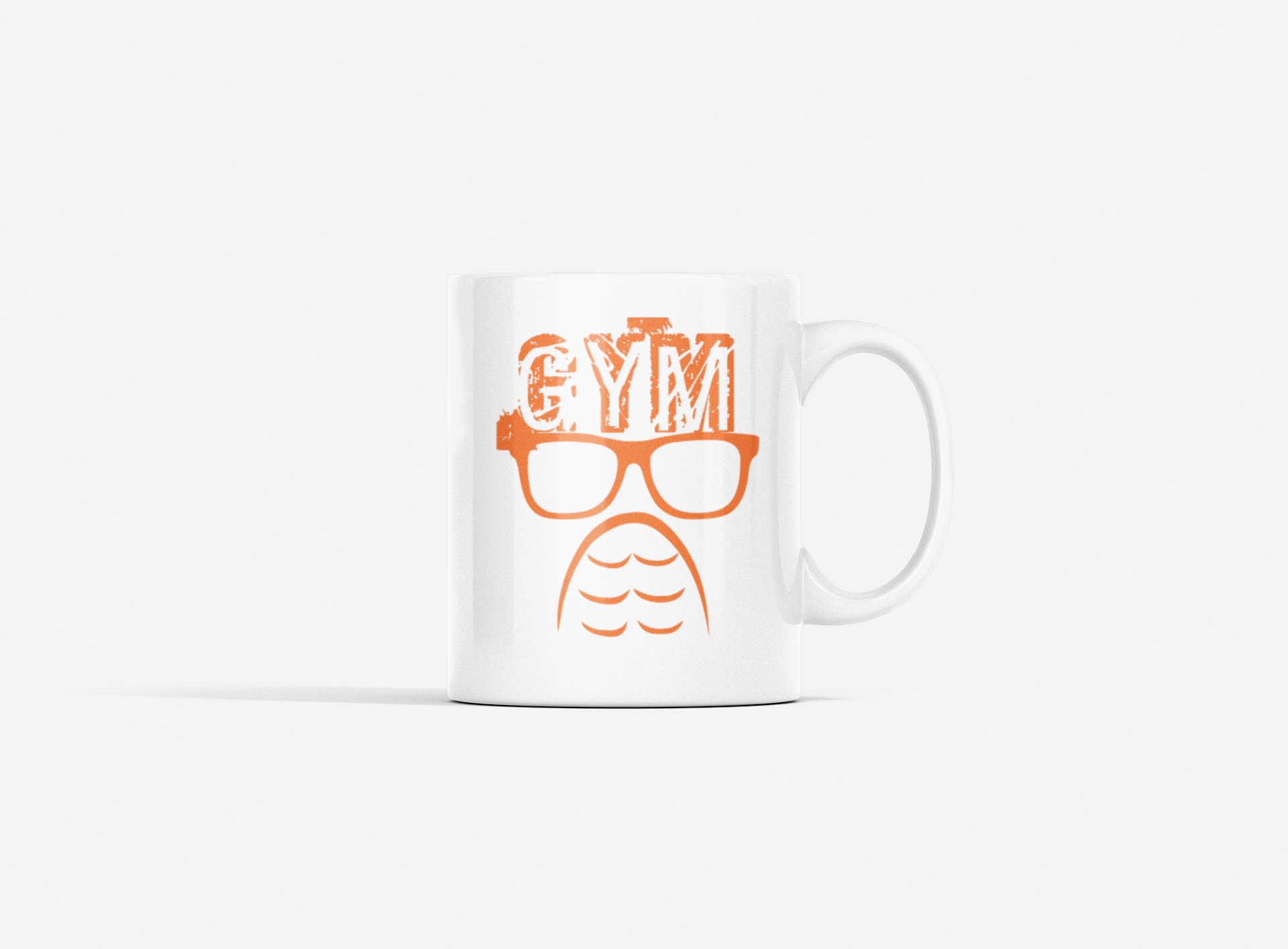 Gym Above Glasses, (BG Orange) - gym themed printed ceramic white coffee and tea mugs/ cups for gym lovers
