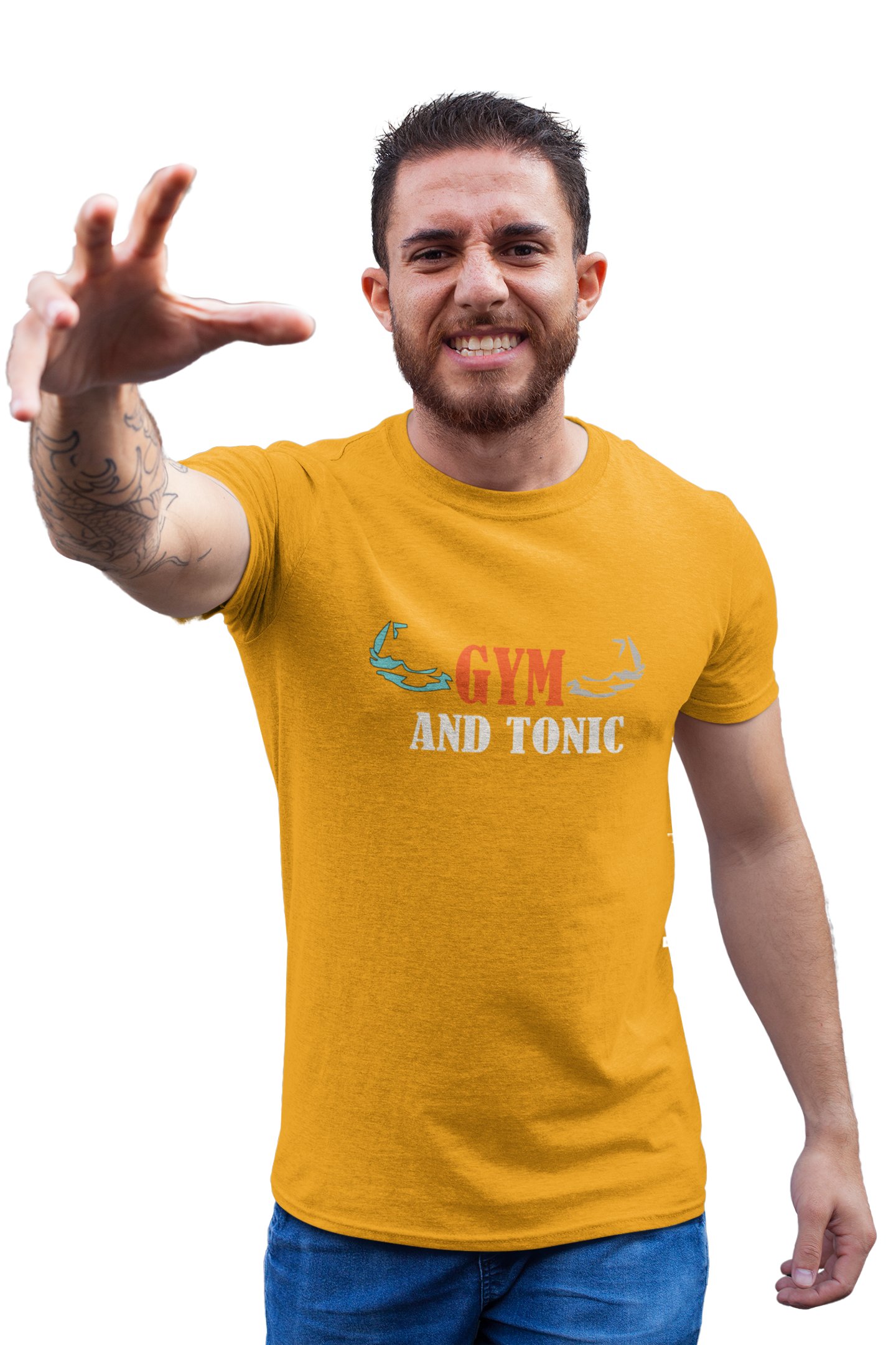 Gym and Tonic, Round Neck Gym Tshirt (Yellow Tshirt) - Clothes for Gym Lovers - Suitable for Gym Going Person - Foremost Gifting Material for Your Friends and Close Ones