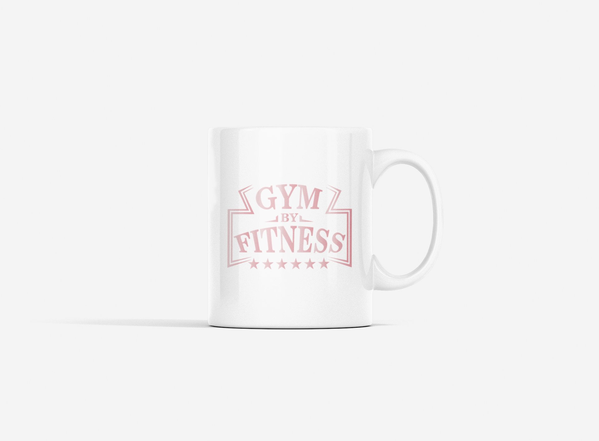Gym By Fitness, (BG Pink) - gym themed printed ceramic white coffee and tea mugs/ cups for gym lovers