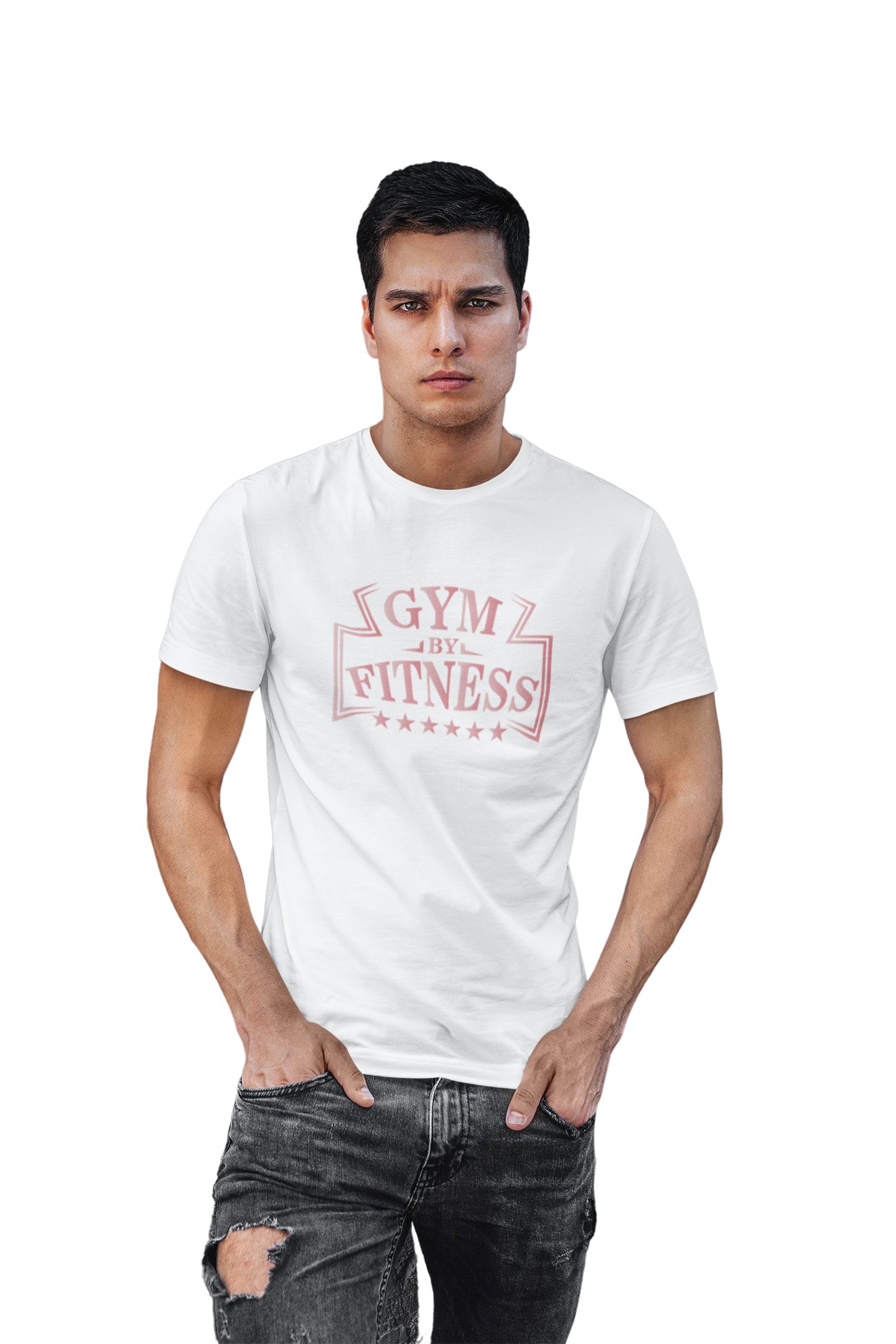 Gym By Fitness, (BG Pink), Round Neck Gym Tshirt (White Tshirt) - Clothes for Gym Lovers - Foremost Gifting Material for Your Friends and Close Ones
