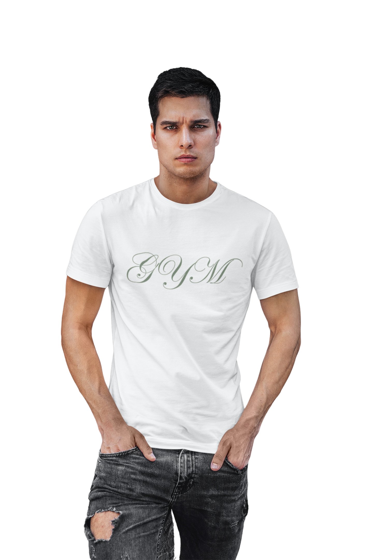 Gym, (Cursive Handwriting), (BG Green), Round Neck Gym Tshirt (White Tshirt) - Clothes for Gym Lovers - Foremost Gifting Material for Your Friends and Close Ones