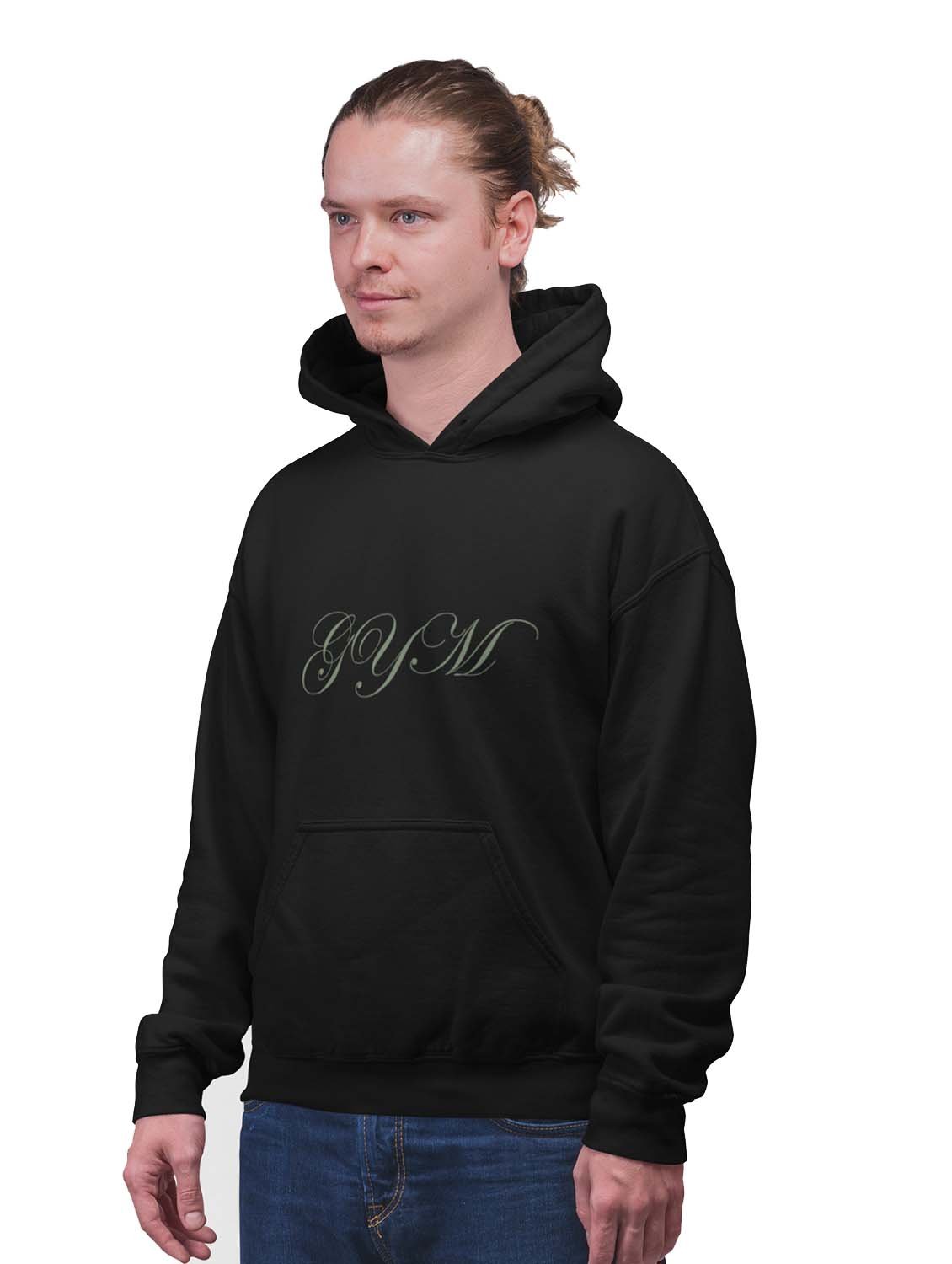 Gym, (Cursive Handwriting)printed artswear black hoodies for winter casual wear specially for Men